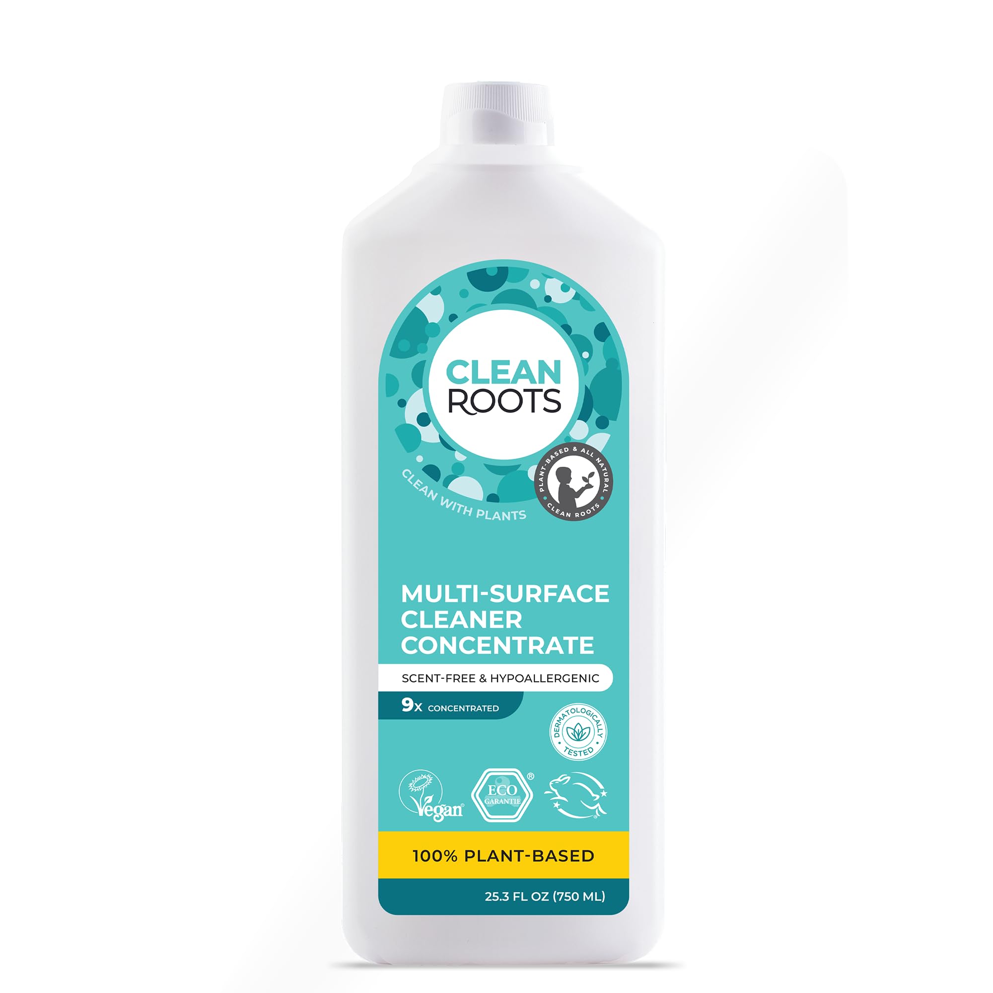 Clean Roots Multi-Surface Cleaner Concentrate, 100% Plant-Based & Organic, EcoGarantie Certified, Scent-Free & Hypoallergenic, 25.3 Fl. Oz. (750 ML)