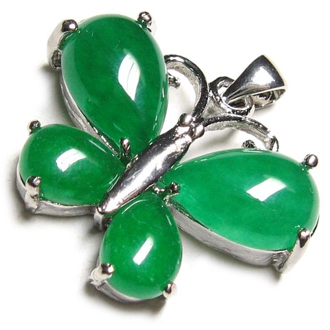 Silver Emerald Jade Butterfly Amulet Pendant