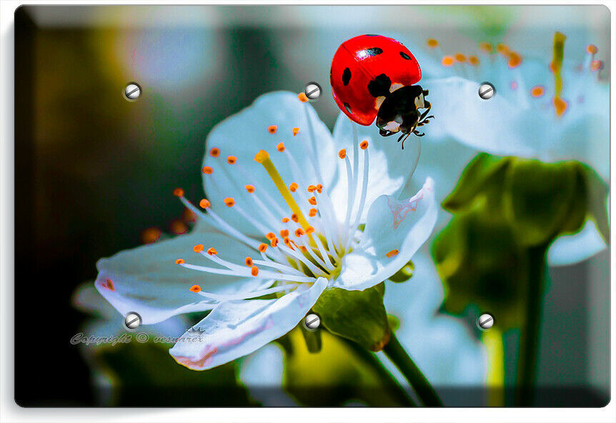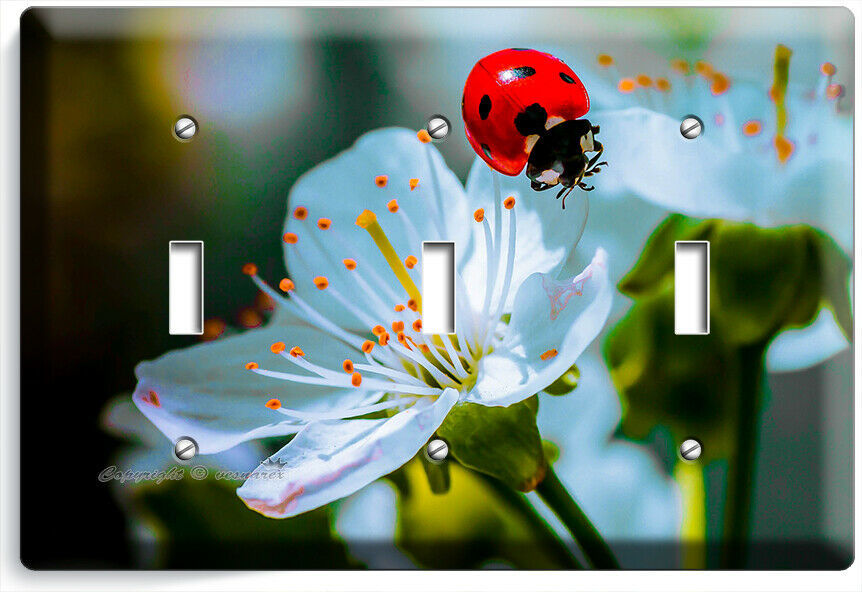 RED LADYBUG ON WILD FLOWER SUMMER NATURE LIGHT SWITCH OUTLET PLATE ROOM DECOR