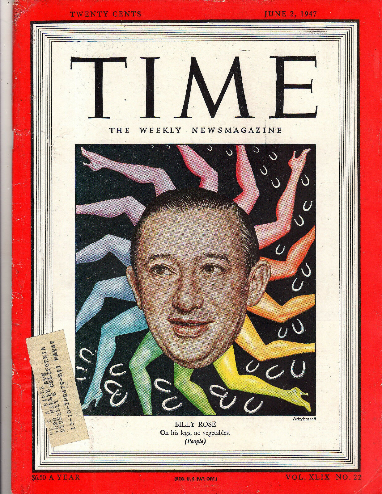 Time Magazine 1947, June 2, Billy Rose, (On his legs, No vegetables) People