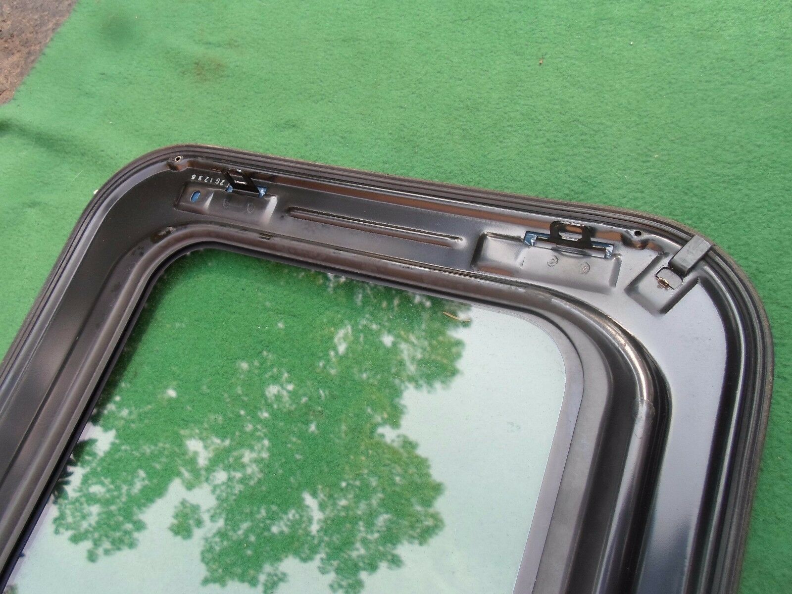 1999 Mazda Protege Year Specific Sunroof Glass Panel. The sunroof is in good used condition. Measurements are 34" long and 16 1/4" wide. This sunroof came on Mazda Protege model year 1999 but please double check your measurements to ensure a perfect fit. This sunroof has a 2 bolt configuration. Please double check the measurements as aftermarket sunroofs have become very popular, if your switch looks like any in our last picture, you have an aftermarket, not OEM. Also please note this sunroof will only fit a 1999 Protege as these are model specific in the Protege line. This glass panel was removed from a Mazda that had a blown engine so there is no unseen damage on this panel as is found with a majority of sunroof glass panels that are removed from wrecked vehicles. Often times on a wrecked vehicle, the metal trim around the glass, under the seal, will incur slight bends which will make the panel leak soon after. We have been dealing in sunroof glass panels for 20 years now and only sell the panels that come through our shop that are off of vehicles that have not been in major accidents. We also 100% inspect and clean the panels, especially the seals, in an effort to identify any imperfections that may cause issues down the road. The glass panels are inspected after removal from the vehicle as the seals can be easily damaged during the removal process. The sunroof comes read to bolt in. Please contact us with any questions that you may have.