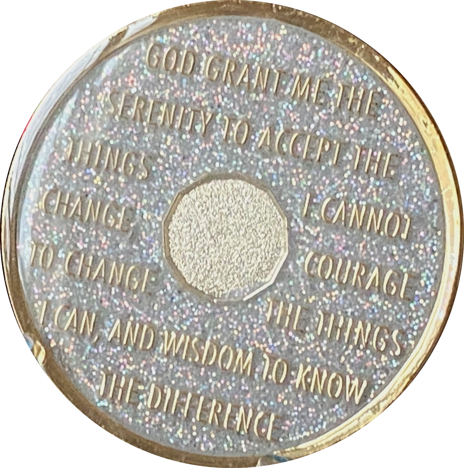 Opal Color Silver Glitter Tri-Plate Sobriety Chip