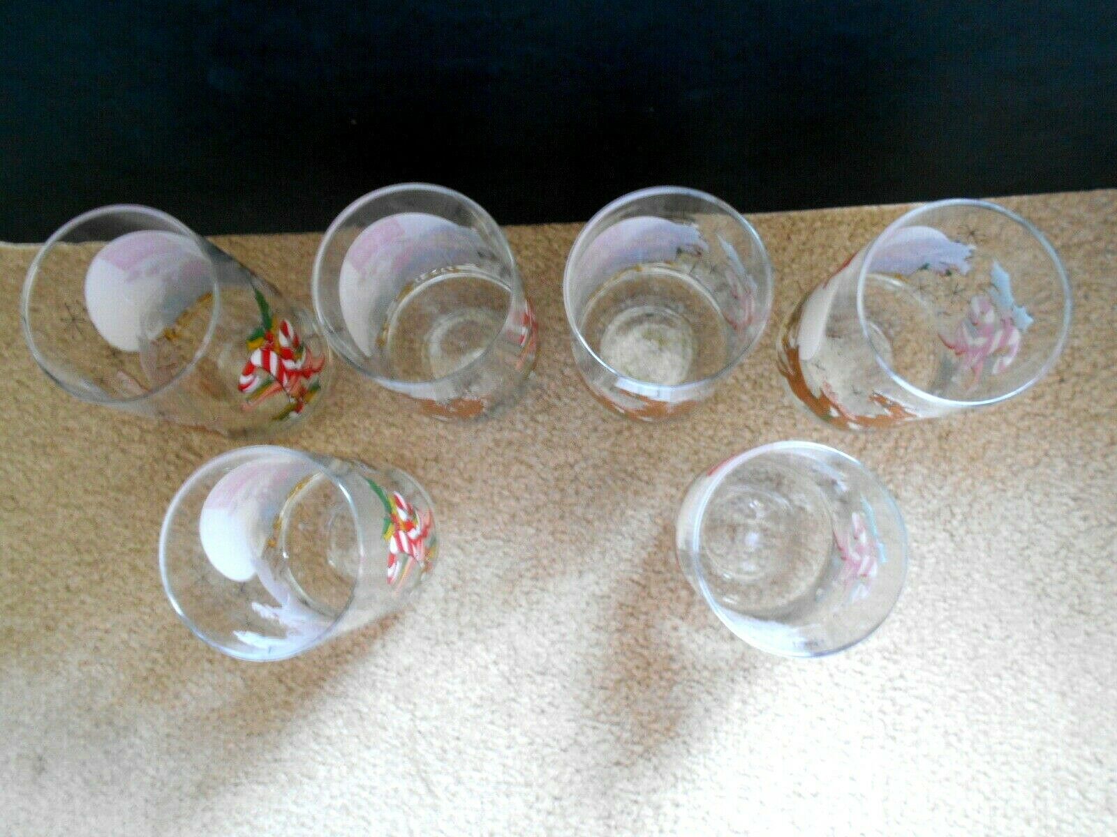 * The glasses have Santa with Reindeer going around glass and 2 Candy Canes with Holly Leaves on other side