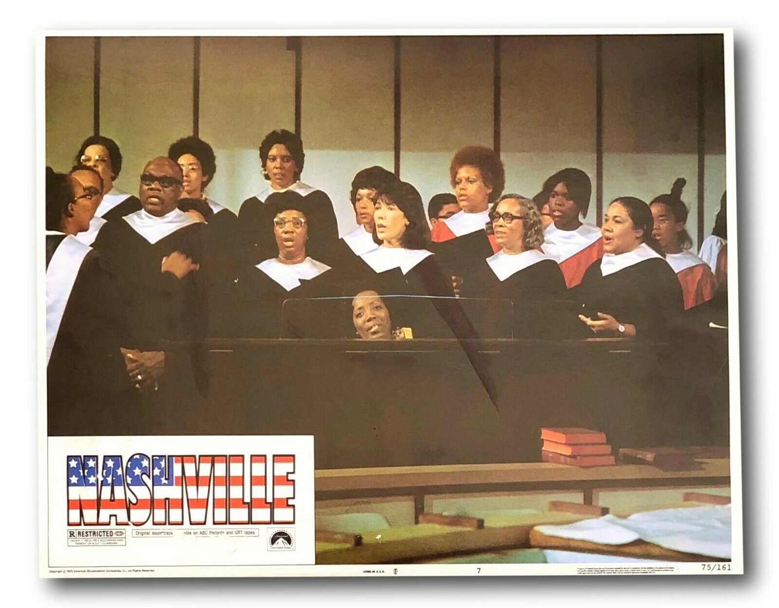 Looking for the next great piece to add to your memorabilia collection? Well, this is it! " Nashville rdquo; Starring: David Arkin, Barbara Baxley, Ned Beatty, Karen Black, Ronee Blakley, Keith Carradine Copyright Year / Dated: 1975 11" X 14" in size Not a bootleg or reproduction - GUARANTEED Original movie studio production theatrical lobby card used in a movie theater around time of release of the movie. Condition: Poster is in -vintage condition- and of investment quality. This original lobby card was used at a movie theater. It may or may not have staple marks at corners, wrinkling, slight tears around edges, rounded corners, etc. From being originally displayed at a movie theater or overtime natural wear. Colors and detail are outstanding for this day amp; age, photos may not completely pick up high quality of coloring and inks until you see in hand. Please make your personal assessment of the condition of this poster from the photos provided in the listing. The above condition issues are not exact for this poster, so please take a look at the photos to determine the condition. We ship our items very protected and secure to make sure this item makes it to you safely!!