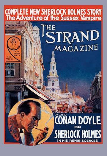 12inch x 18inch Poster Sherlock Smokes Pipe behind which is a scene of Old London from a Magazine Cover There is a border around the image. The image size is correct.