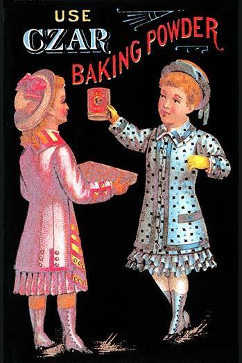 12inch x 18inch Poster Original advertising on a Victorian trade card showing two children discussing the Czar brand of baking powder. - There is a border around the image. Image size is correct.
