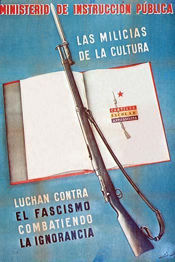 20inch x 30inch Poster Rifle over an open Book. Luchan Contra El Fascisom Combatiendo La Ignorancia - There is a border around the image. Image size is correct.