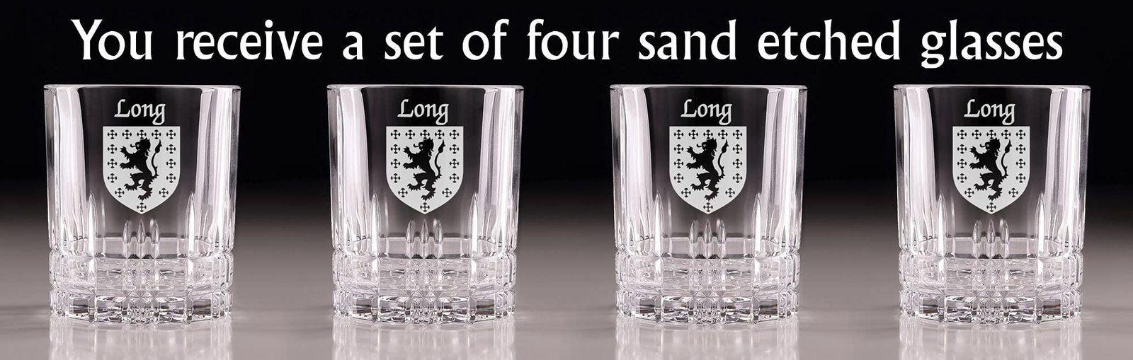 Product description: Long Irish Coat of Arms Cut Glass Tumblers - Set of 4. Pour your favorite beverage and enjoy it in luxury! These Spiegelau Perfect Serve double old fashioned glasses are the perfect way to elevate your home glassware! Featuring an elegant retro, cut-glass design and your very own Irish Coat of Arms expertly hand-sandblasted onto each tumbler, this glass is sure to impress! Made with Spiegleau's unique Platinum Glass process to eliminate imperfections in the glass, they're thick-walled, heavy weighted, and crystal clear!