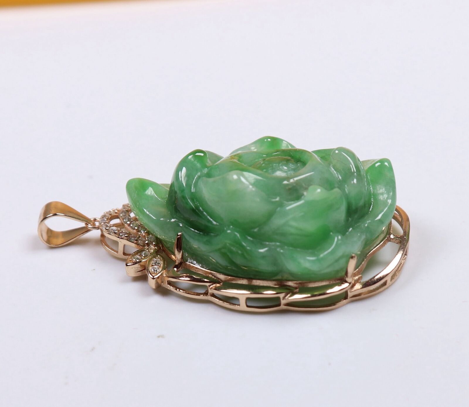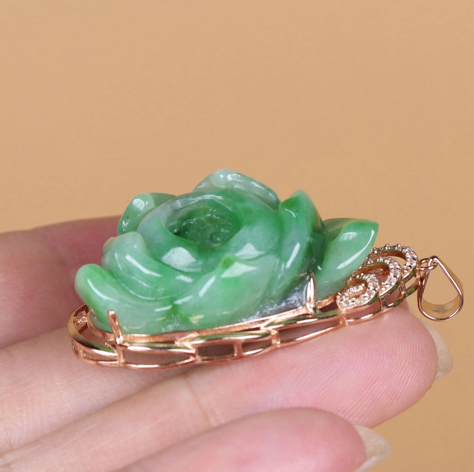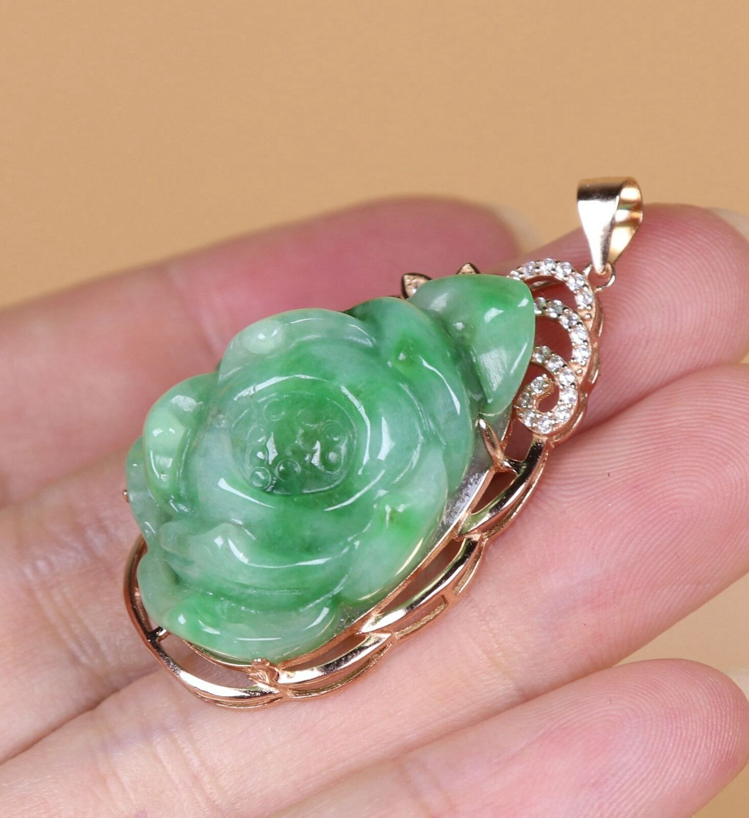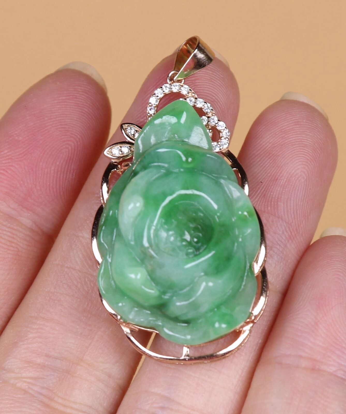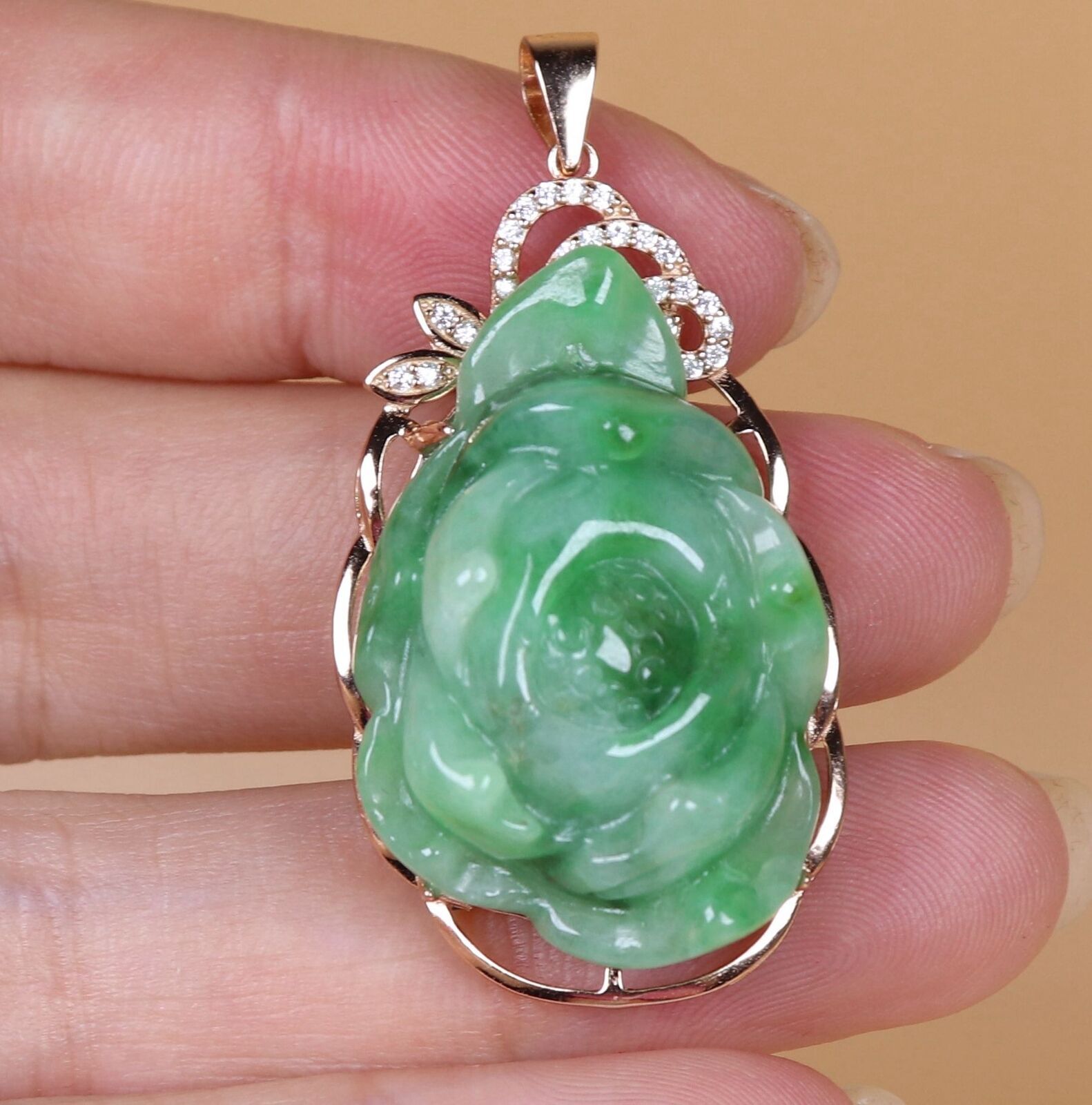 Cert'd 925 Silver inlay Green Natural A jade jadeite flower Pendant 25001a
