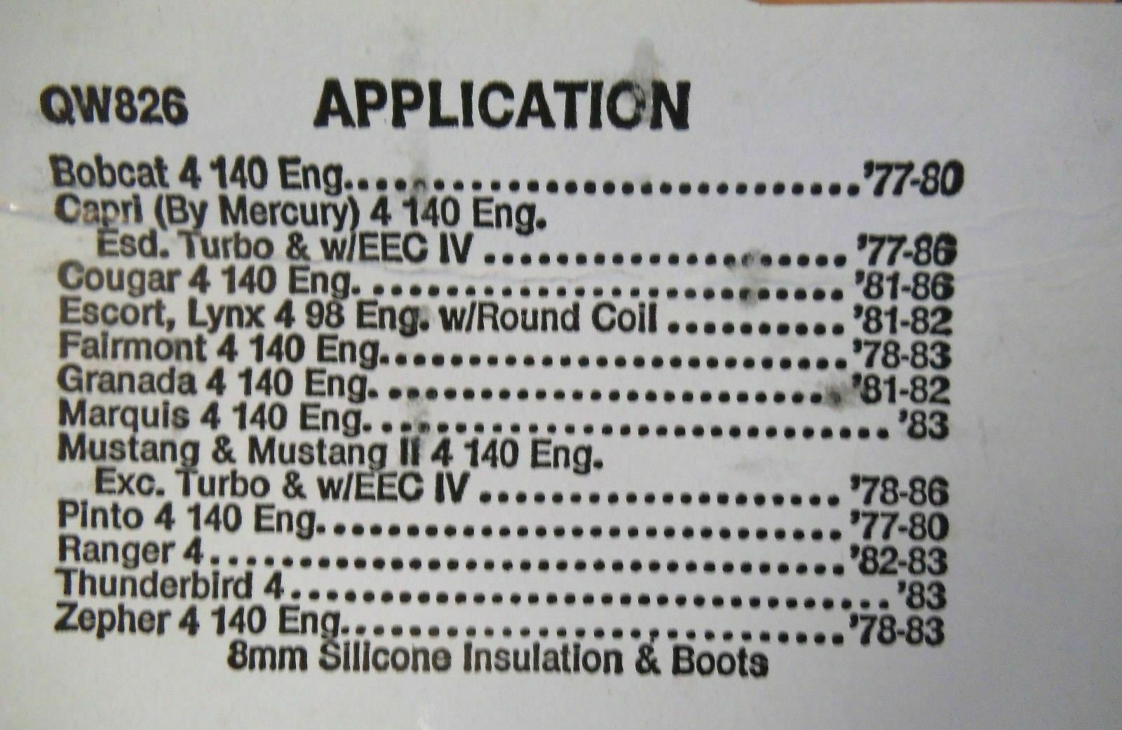 Wells QW826 Spark Plug Wire Set 4 cyl. Bobcat Ford Zepher Thunderbird 1977-1986