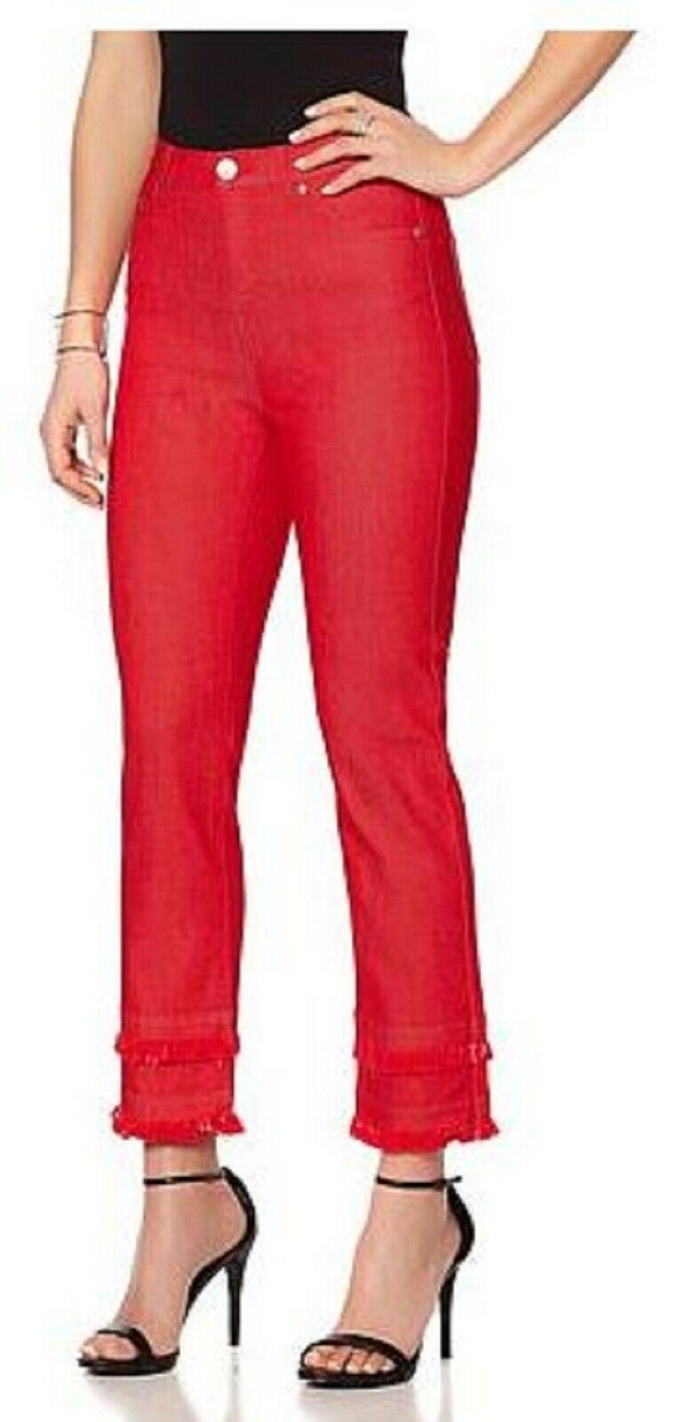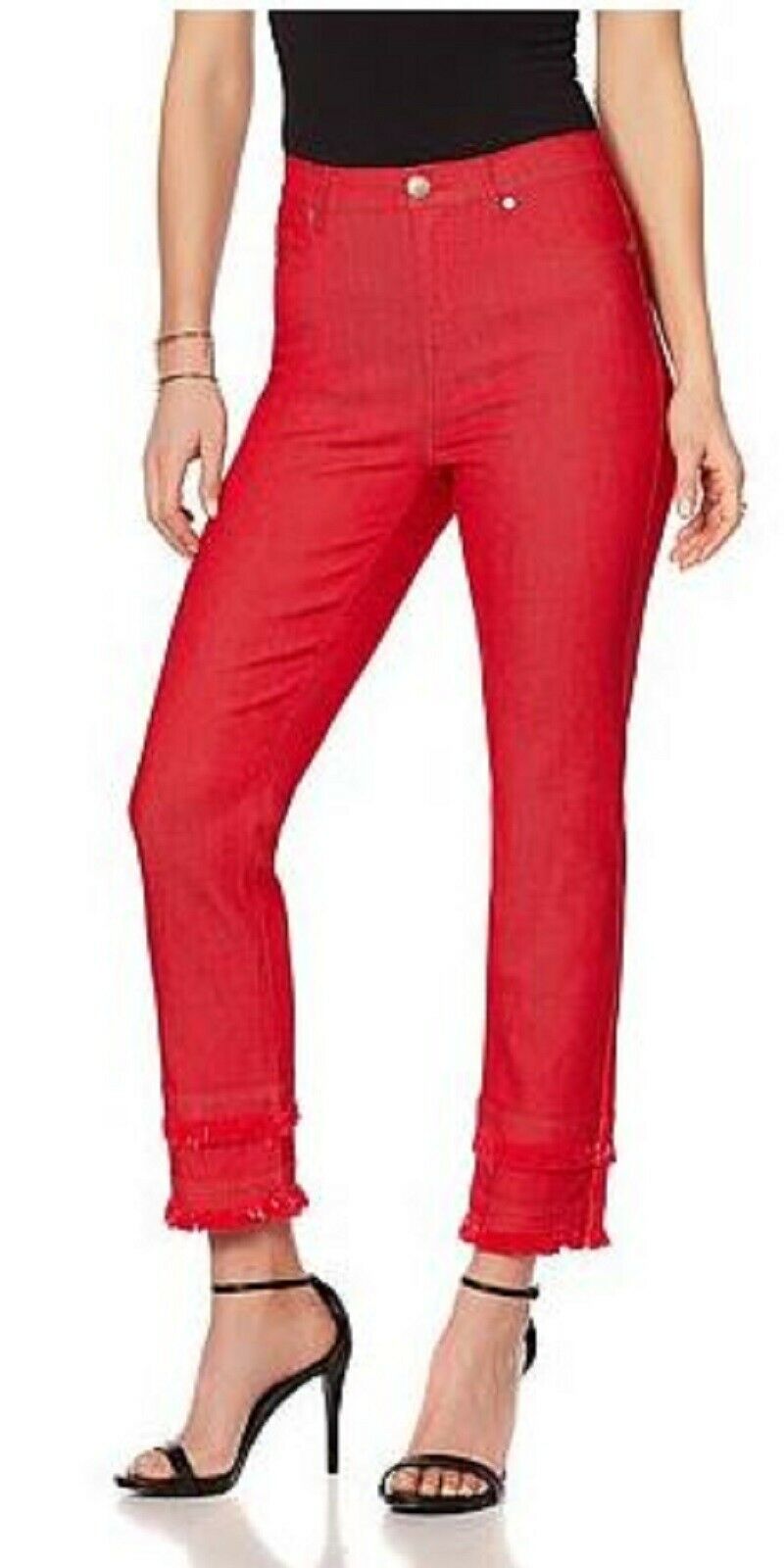 NWT Diane Gilman 595291 Womens Classic Red Frayed Hem Cropped Jeans