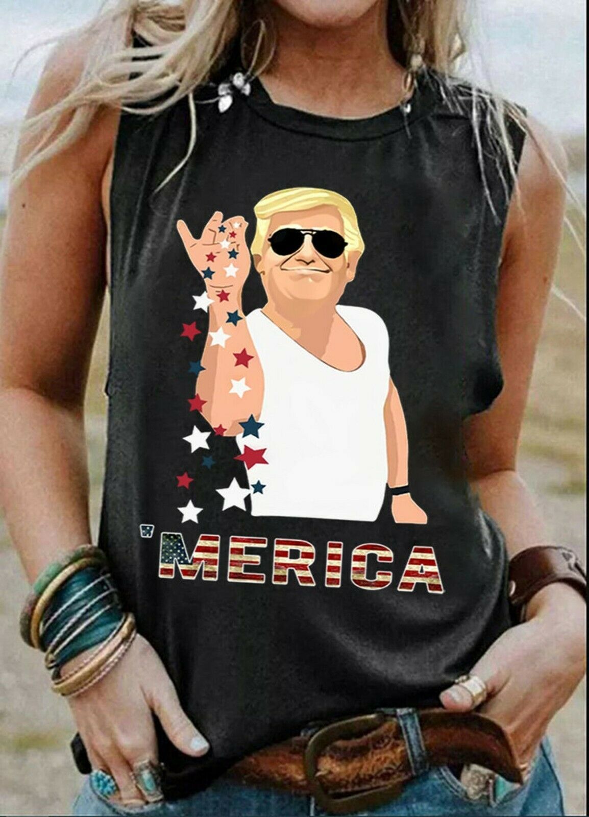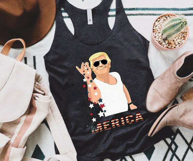 Trump Next Level Merica Freedom woman's racerback Tank top (Large)