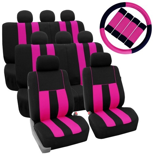 Steering wheel cover, seat belt covers & rear view mirror cover hot pink
