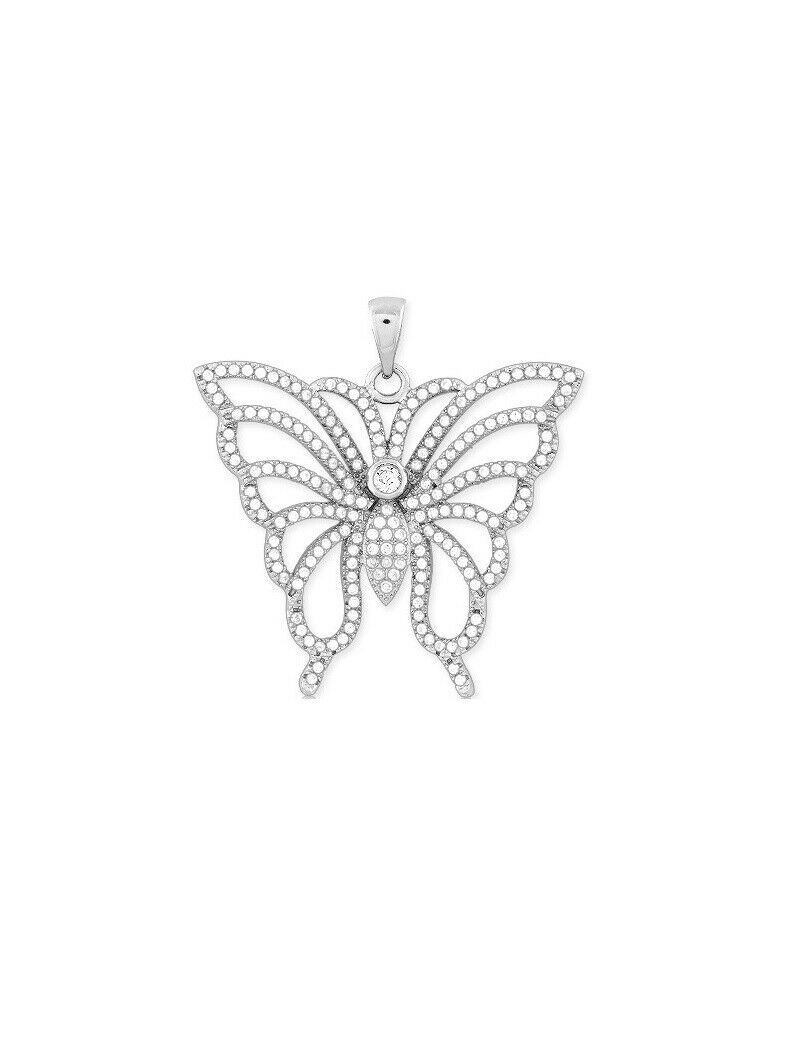 Sterling Silver Clear Micro Pave CZ Large Butterfly Pendant Necklace