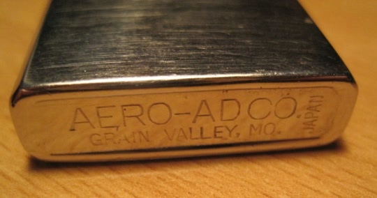 Vintage AERO-ADCO Grain Valley MO. Slim Style Flip Top Chrome Business Advertising Lighter. SOLD AS IS