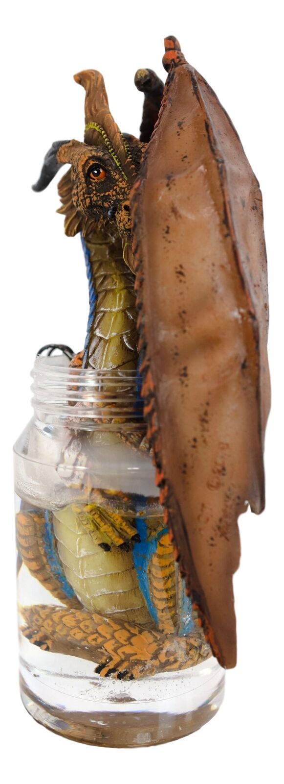 • This Cocktails And Dragons Collection Dragon Figurine is approximately 8" tall, 4.25" long and 3.5" deep. It weighs about 14 ounces.
