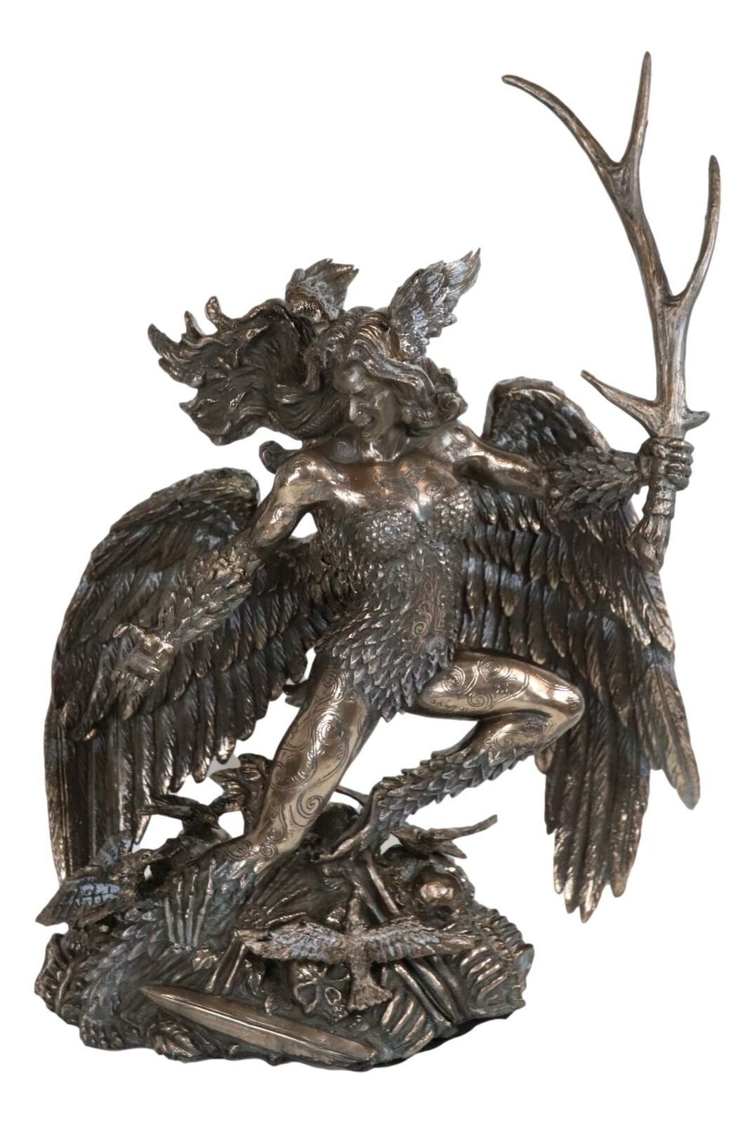10.5"H Irish Celtic War Goddess Winged Morrigan Phantom Queen W/ Antler Figurine