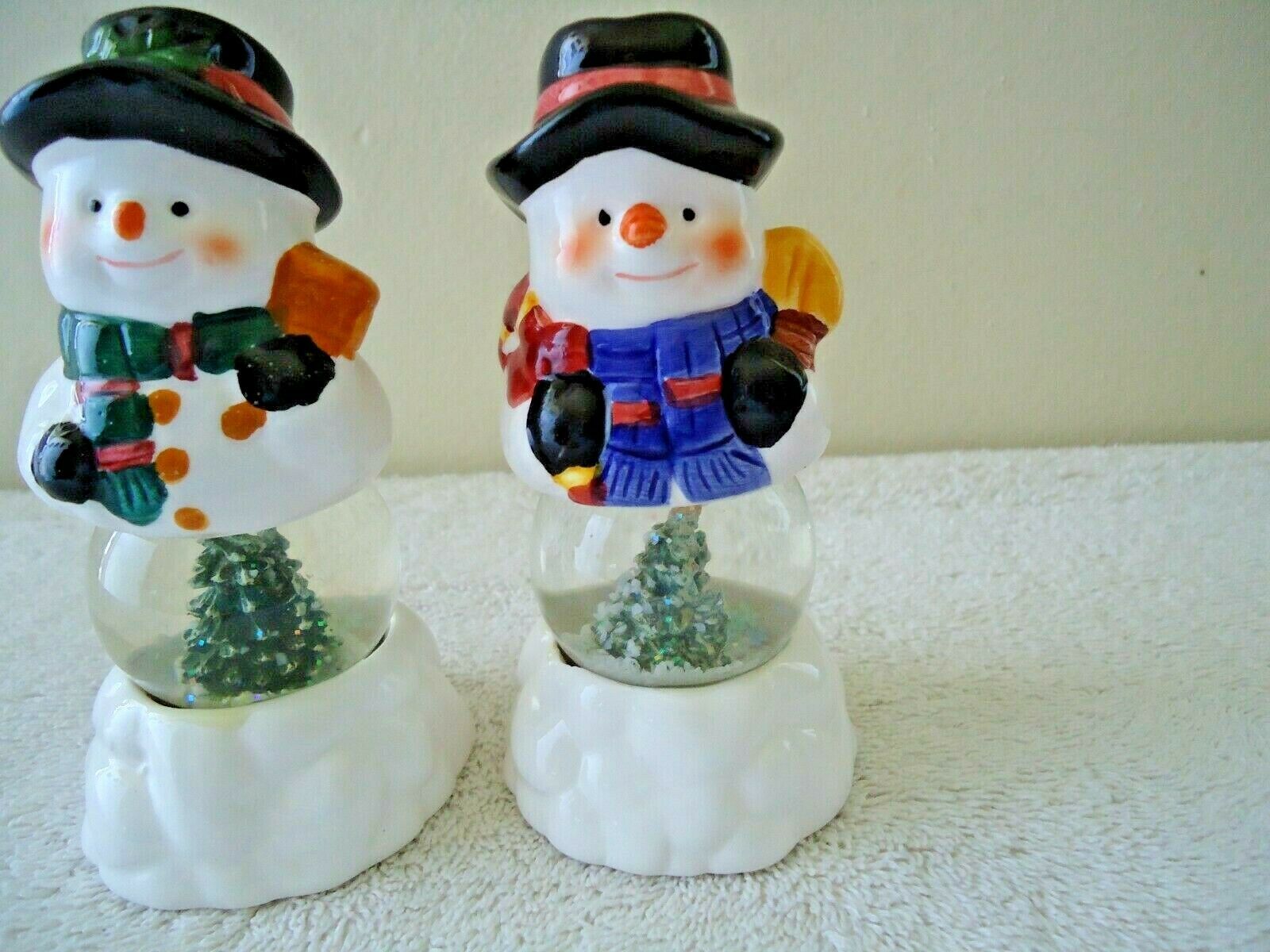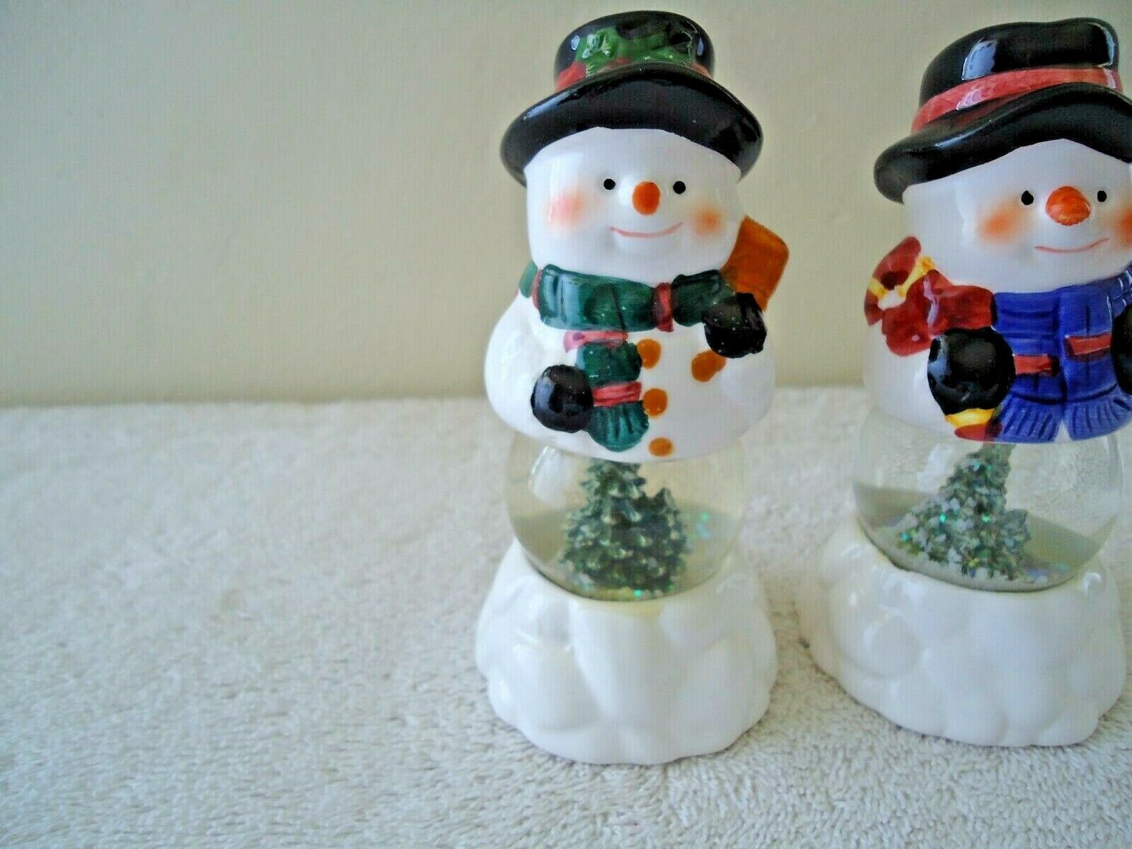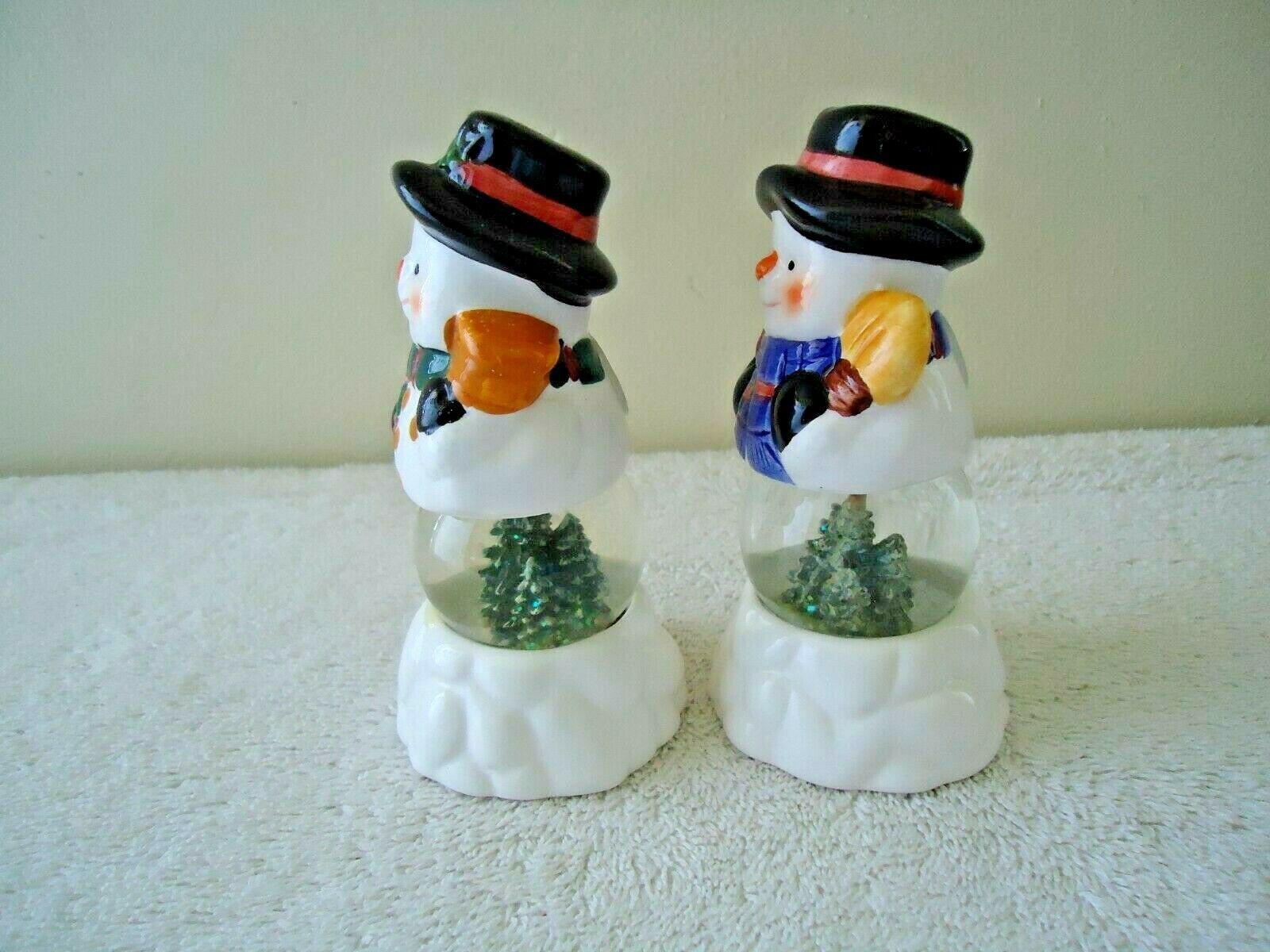 " NWOT " Holiday Seasons Snowmen Water Globe Salt & Pepper Shaker Set