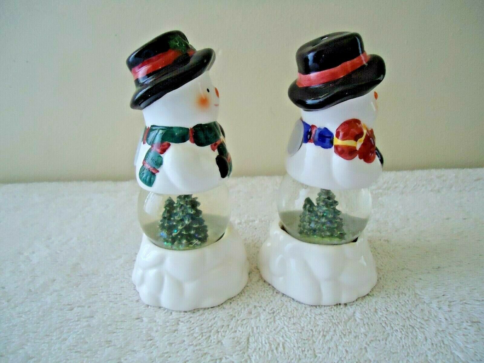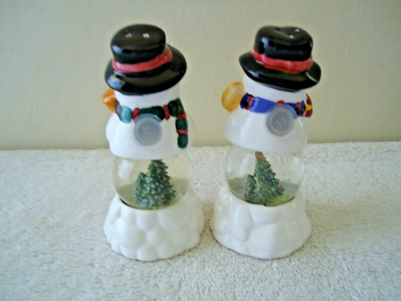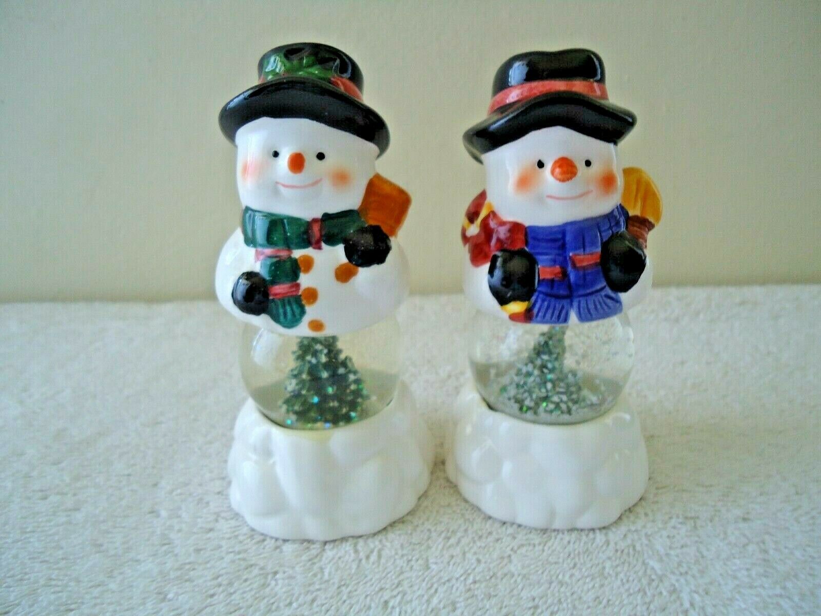 " NWOT " Holiday Seasons Snowmen Water Globe Salt & Pepper Shaker Set