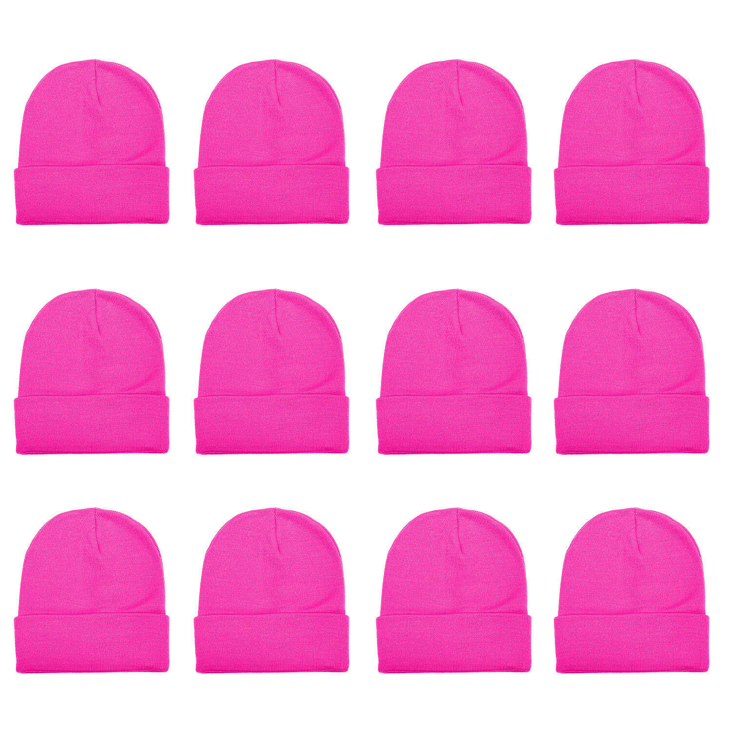 Hot Pink Unisex Beanie Hat Plain Warm Knit Cuff Skull Ski Cap