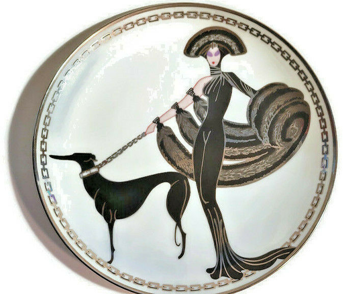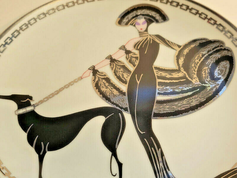 House of Erte SYMPHONY IN BLACK Collector Plate Dog Greyhound Lady