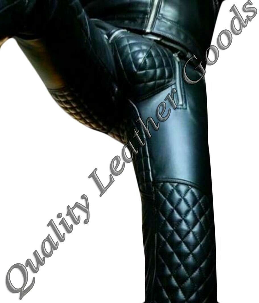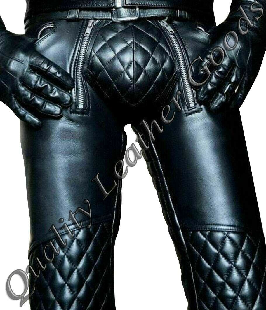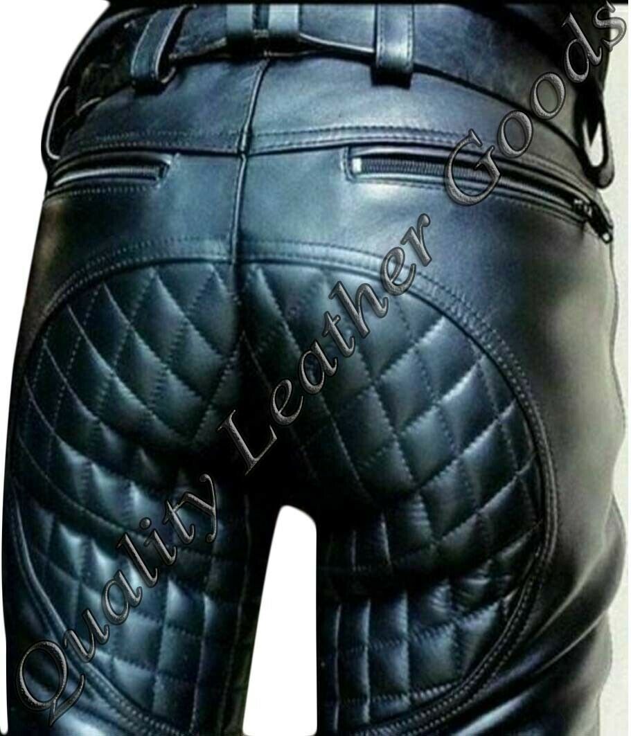 MENS PREMIUM LEATHER LEDER BIKER JEANS PANTS TROUSER FRONT ZIP PADDED KNEE ARSE