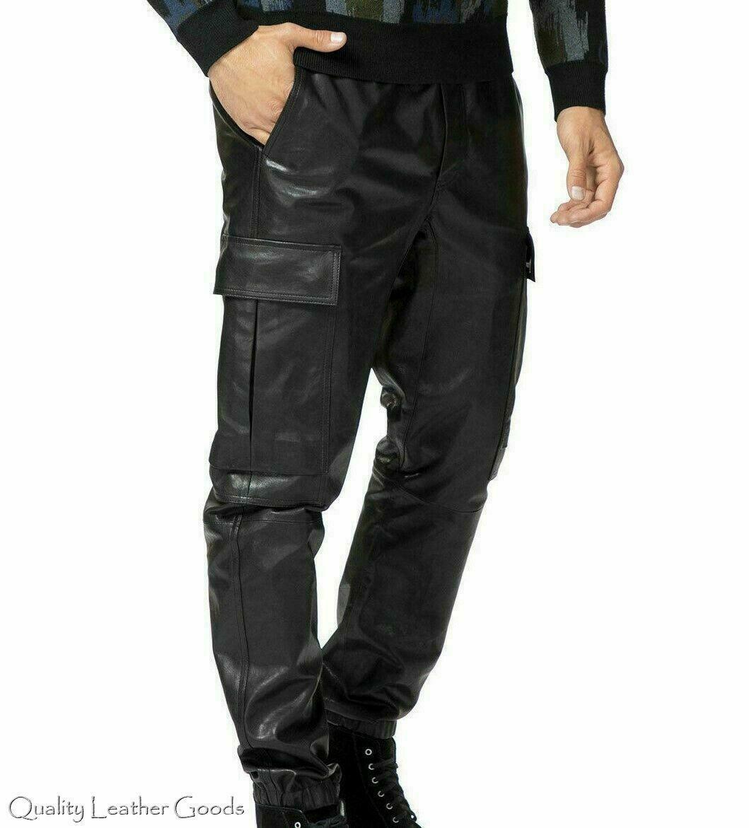 MENS LEATHER LEDER JEANS JOGGERS TROUSERS PANTS CARGO POCKETS 63 FN BLUF CLUB
