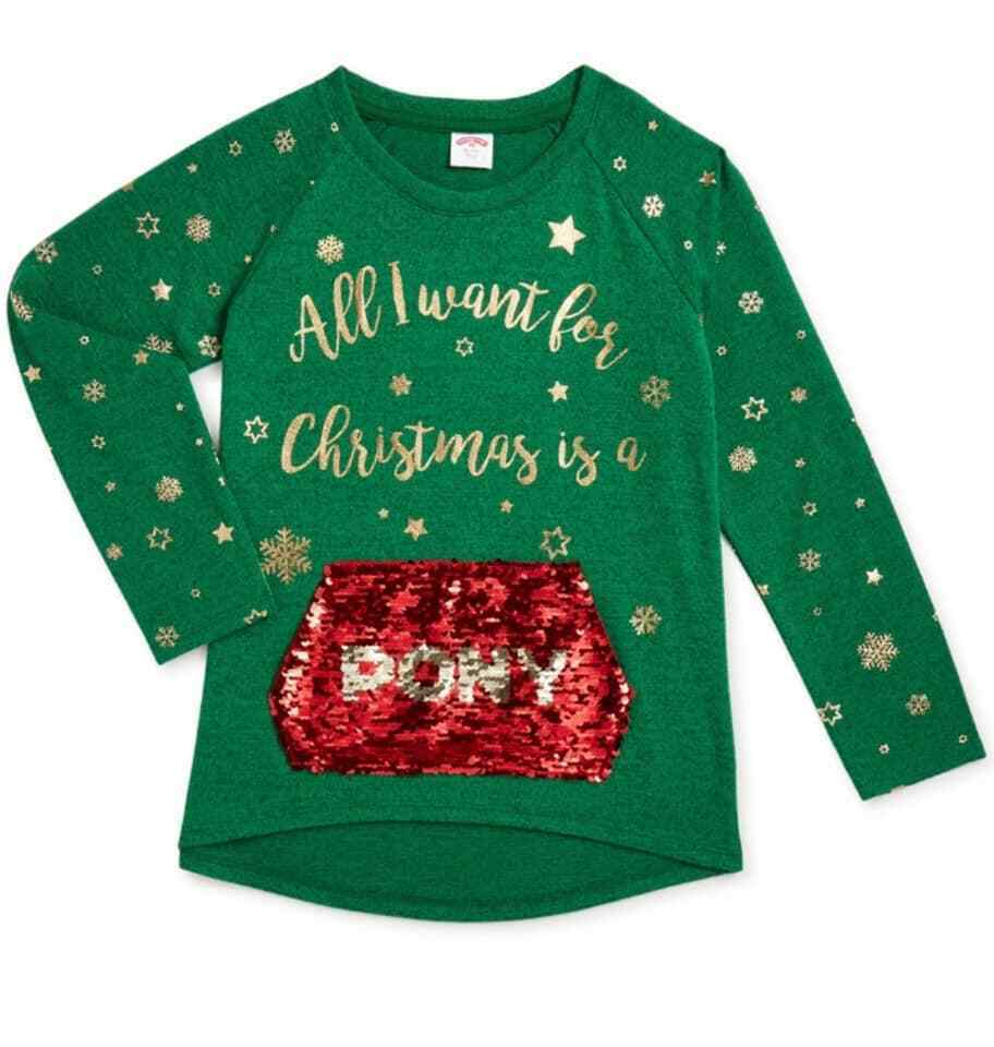 All I Want For Christmas Is A Pony/Unicorn Christmas Sweater Size L 10-12 Plus