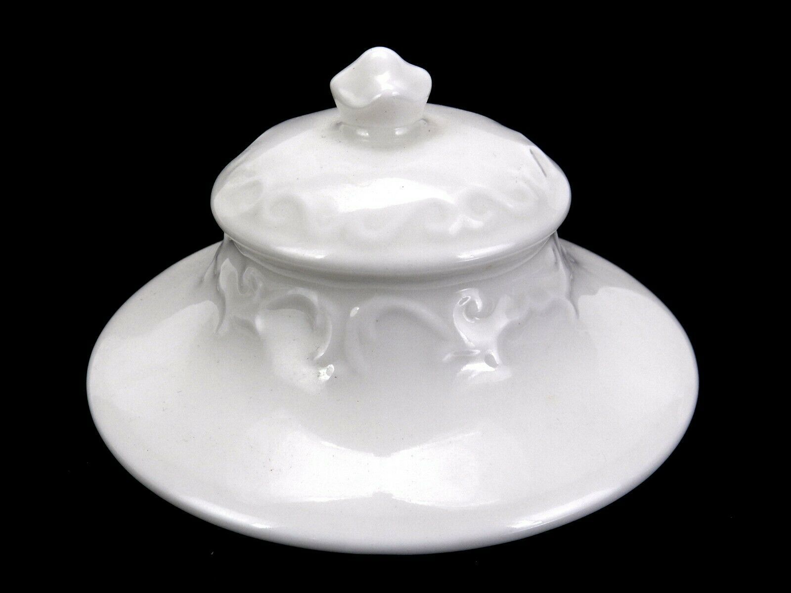 Embossed scrolls around base and upper part of lid