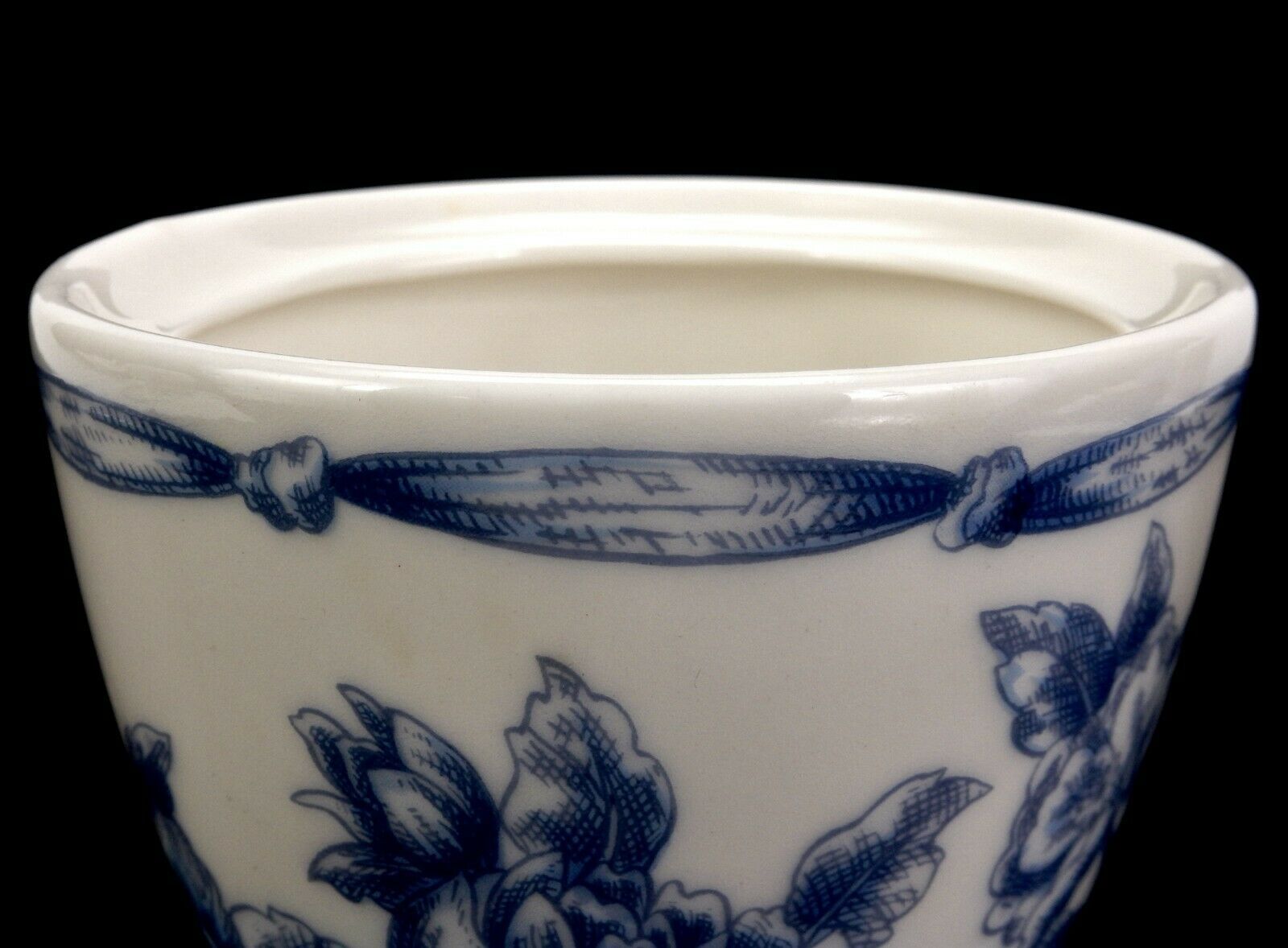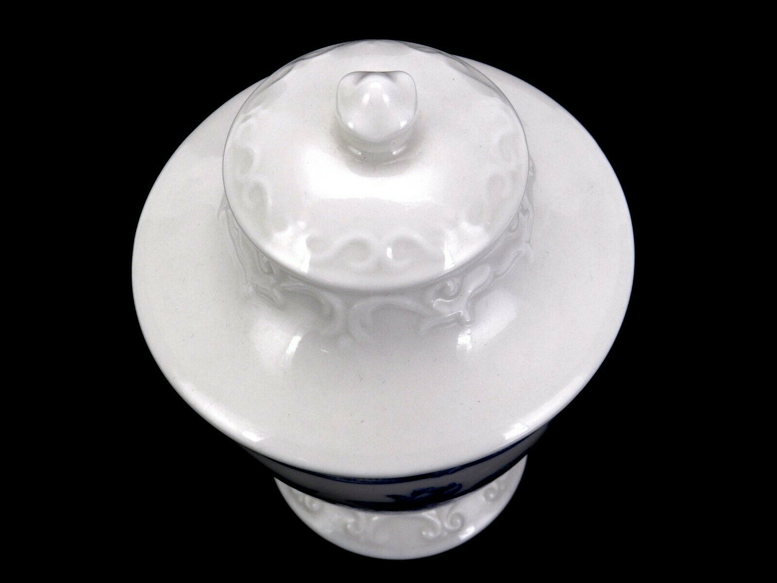 Martha Stewart Covered Porcelain Urn, Blue Delft Style Floral Artwork, Embossed