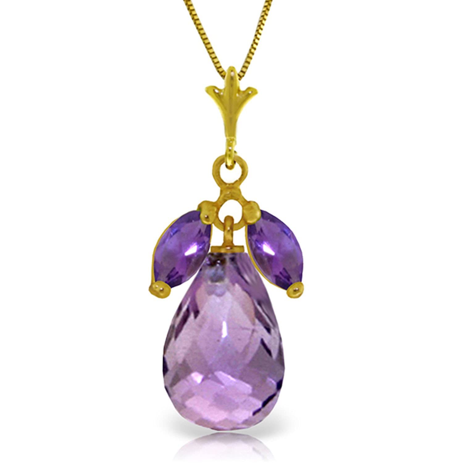 Galaxy Gold GG 14K Solid Yellow Gold Natural Amethyst Pendant Necklace for Women
