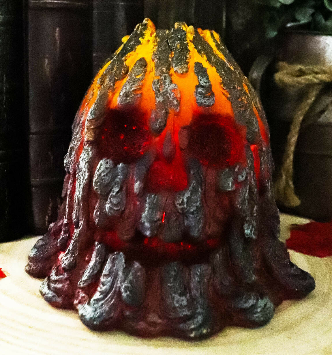 โข This LED Volcano Skull figurine is made of high quality polyresin, meticulously hand painted and polished. Color tone may vary from pictures.