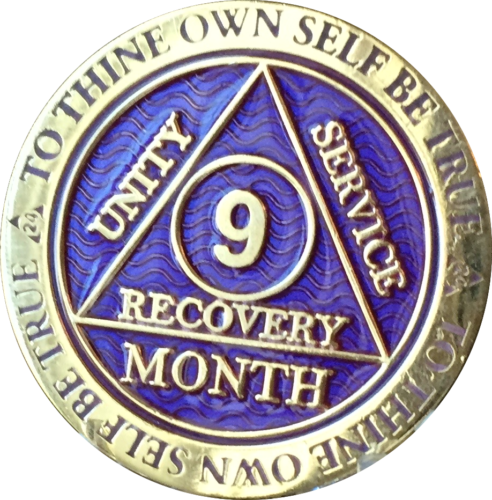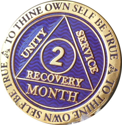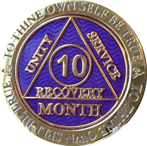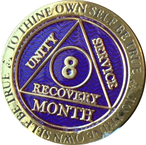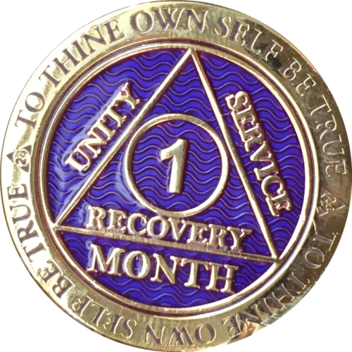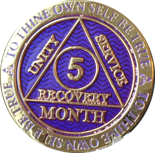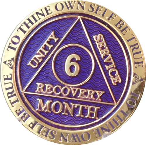 Alcoholics Anonymous Sobriety Medallion In Reflex Purple Violet Color and Gold Plated