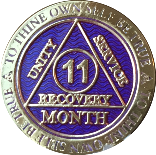 1 - 11 Month AA Medallion Reflex Purple Gold Plated Sobriety Chip Coin