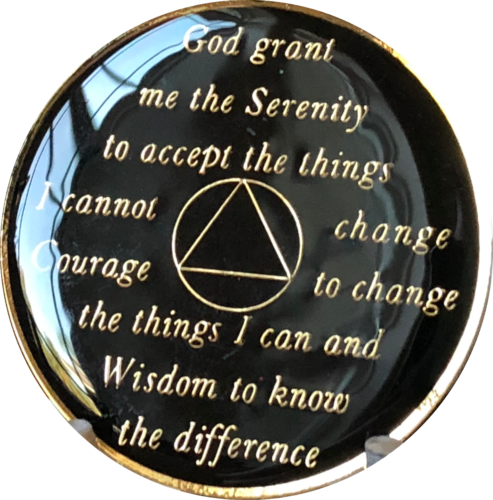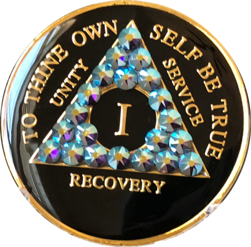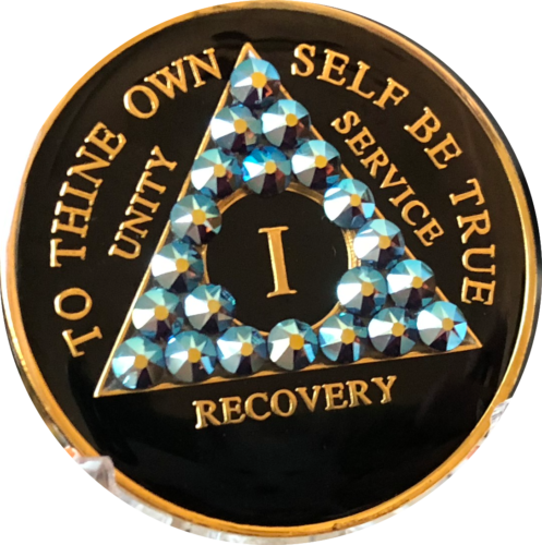 Light Amethyst AB Swarovski Crystal AA Medallion Black Tri-Plate Sobriety Chip Y