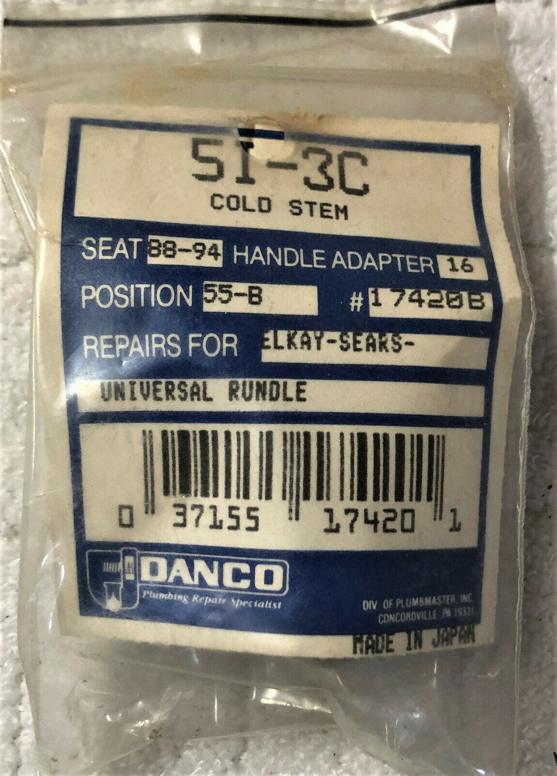 Danco 5I-3C Cold Stem Repair For Elkay-Sears,Universal Rundle17420B
