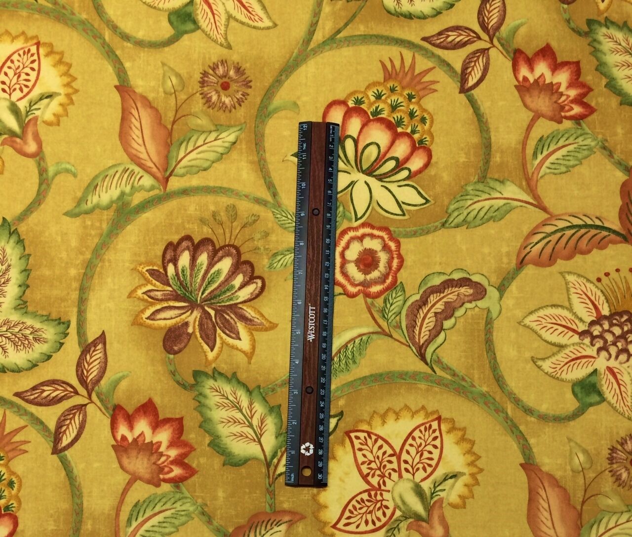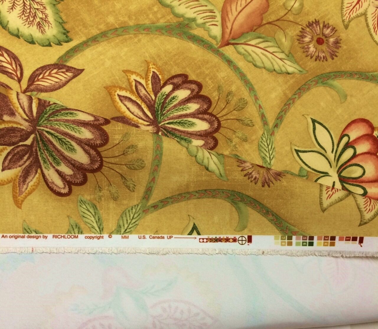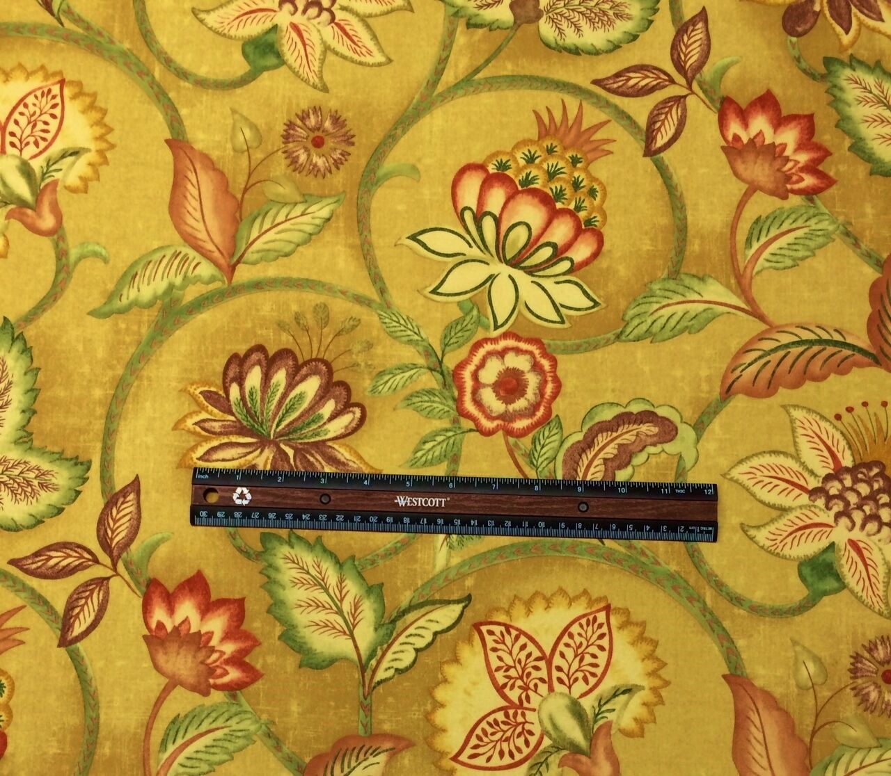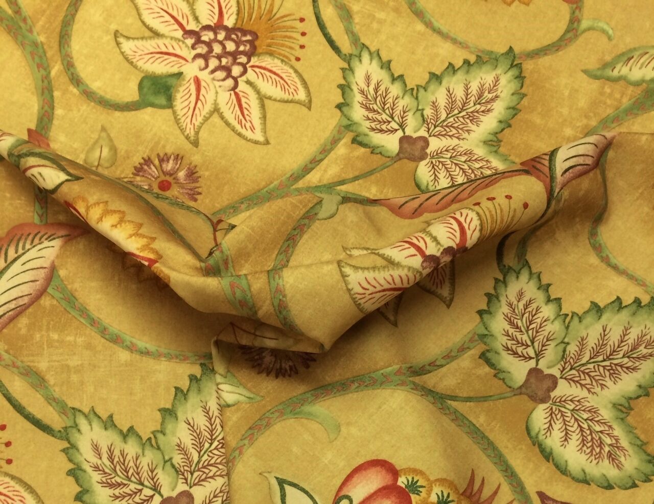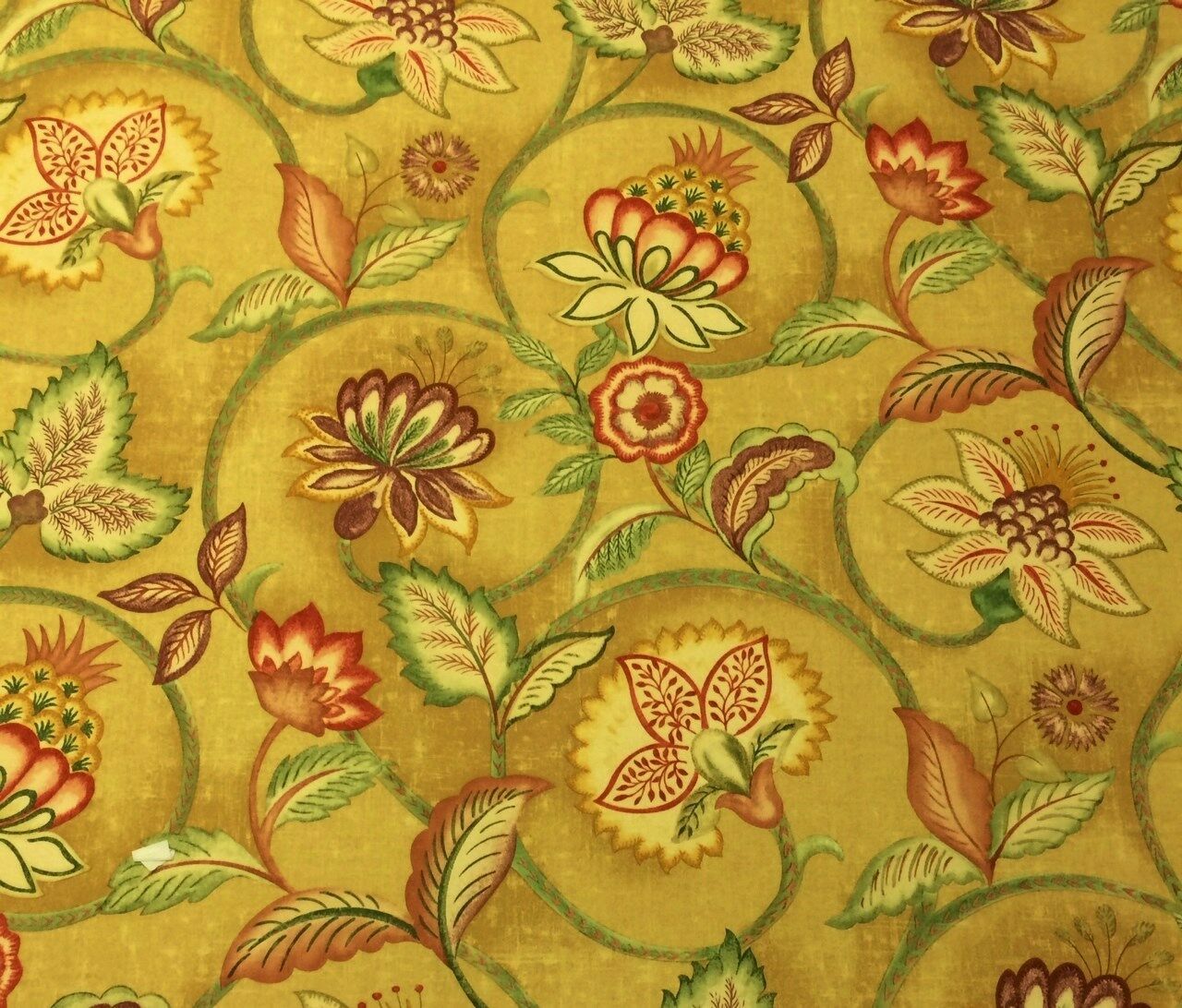 RICHLOOM JACOBEAN FLORAL GOLD LIGHTWEIGHT POLY DRAPERY FABRIC MULTIPLE YARD CUTS