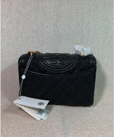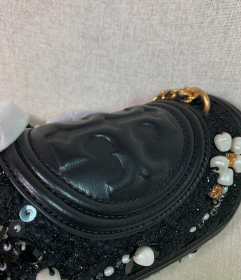 You Are Looking At A Gorgeous Black Tweed/Leather Fleming Embellished Small Messenger/Cross Body/Shoulder Bag By Tory Burch