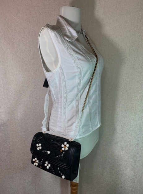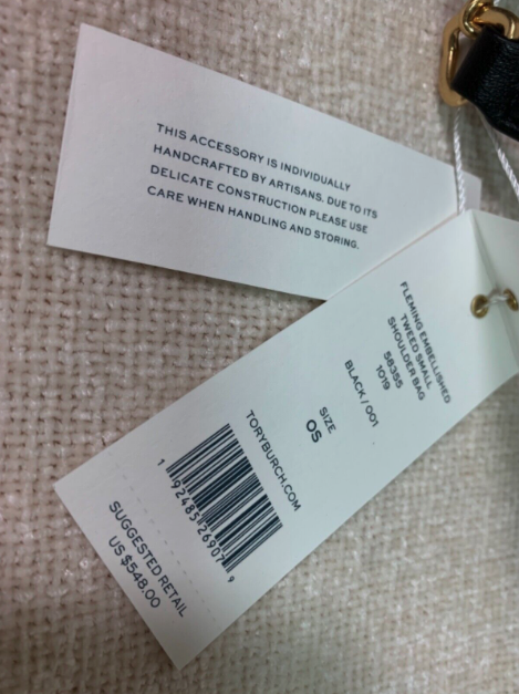 NWT Tory Burch Black Fleming Embellished Tweed Small Convertible Bag $548