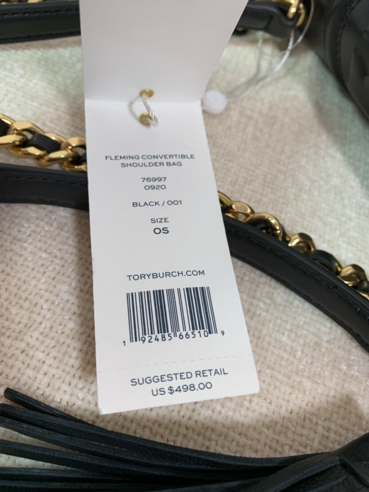 NEW VERSION Tory Burch Black Leather Fleming Convertible Bag $598