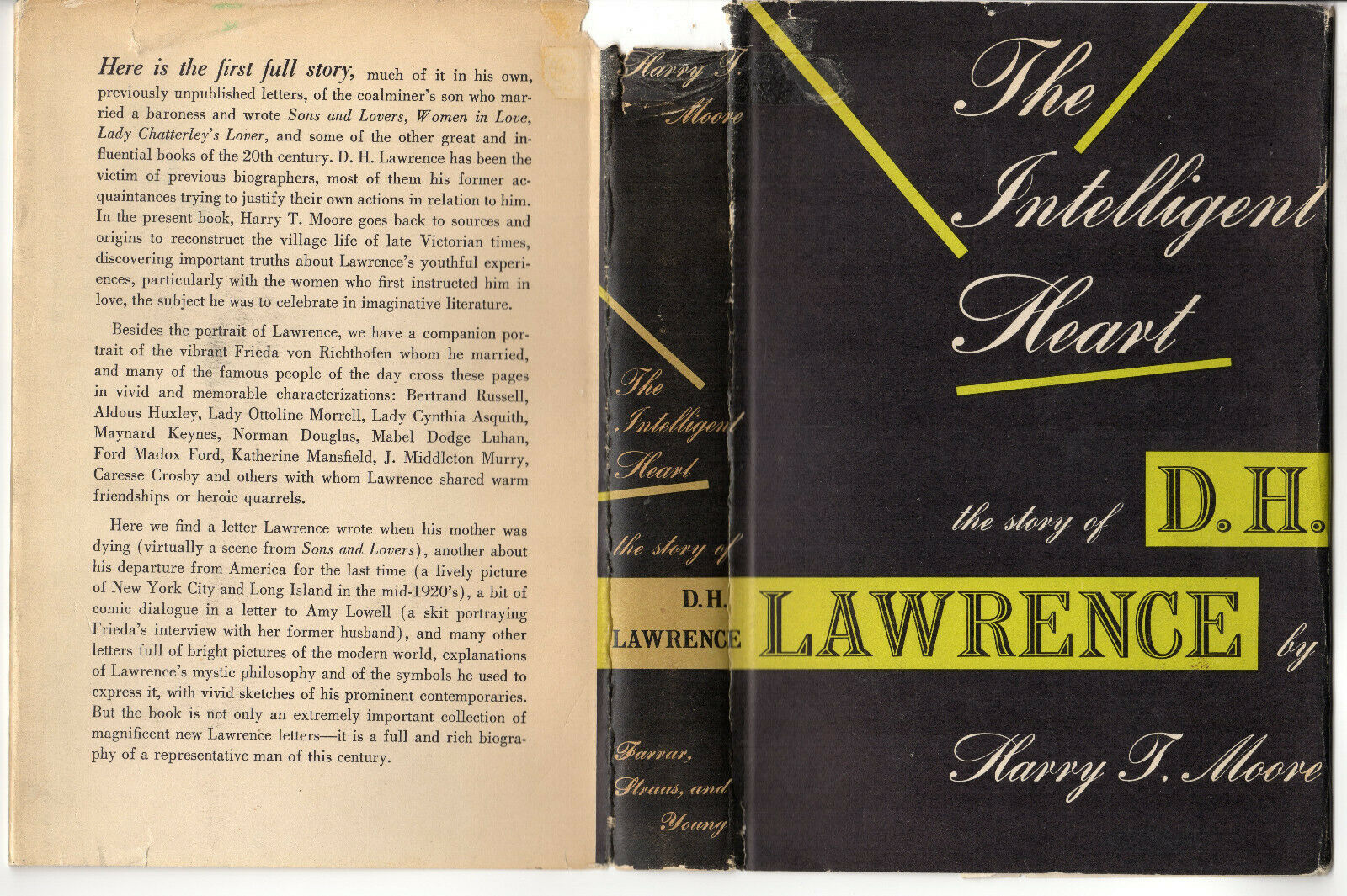Harry T. Moore INTELLIGENT HEART THE STORY OF D.H. LAWRENCE 1954 Hardcover DJ