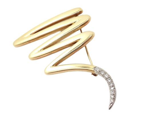 Tiffany Co 18k Yellow Gold Platinum Picasso Diamond Large Squiggle Pin Brooch