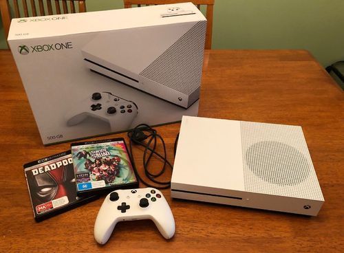 Bundle includes: Xbox One S 500GB Console, 1 Xbox Wireless Controller (with 3.5mm headset jack), HDMI cable (4K Capable), AC Power cable, 14-day Xbox Live Gold Trial