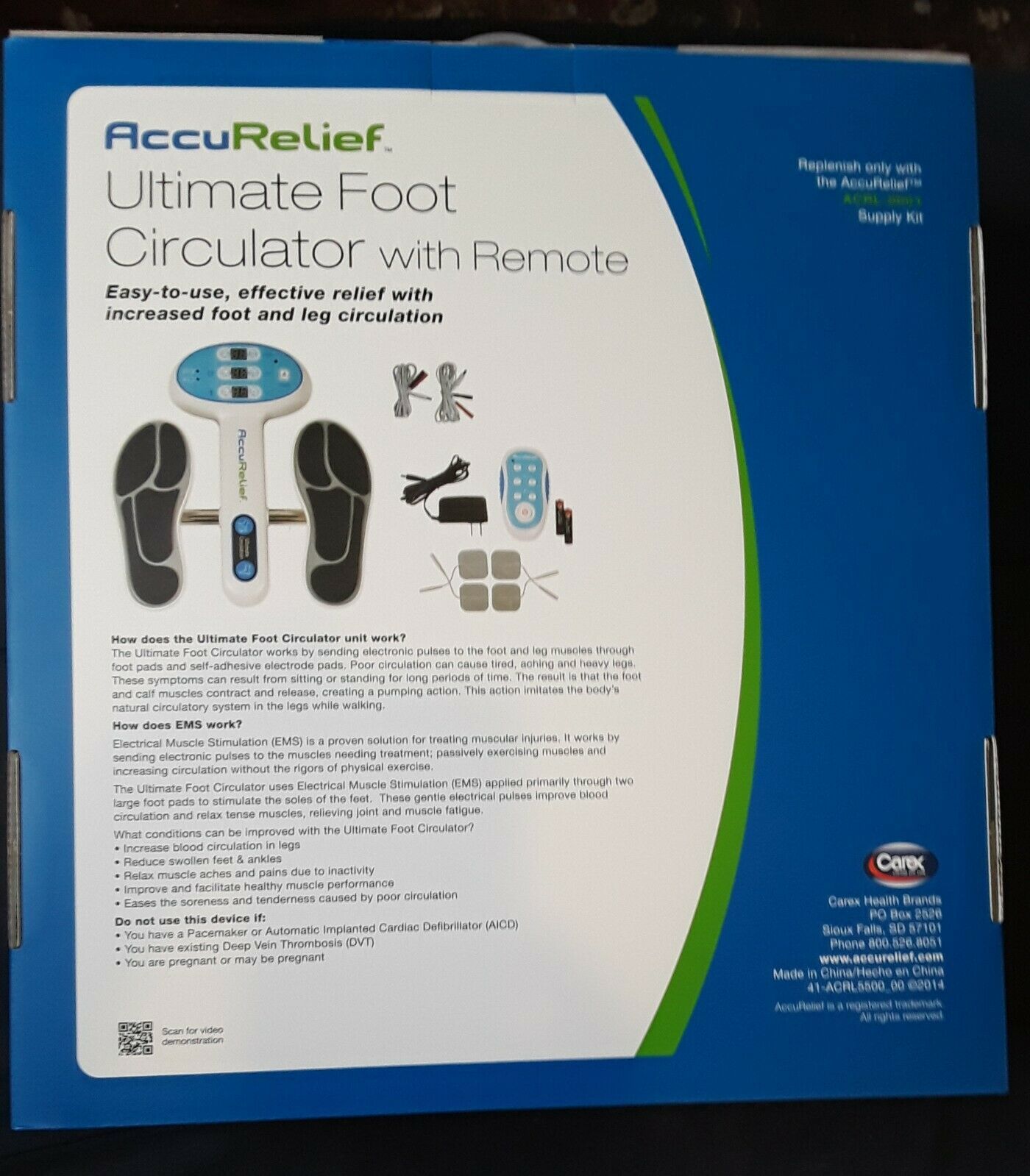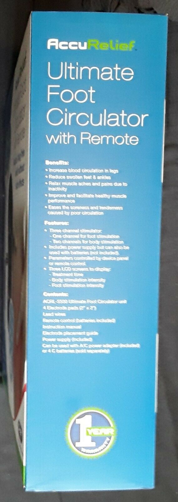 The AccuRelief Ultimate Foot Circulator is an advanced electrical muscle stimulator. This powerful device delivers drug-free relief by relaxing stiff muscles, reducing swollen feet and ankles while increasing circulation.
