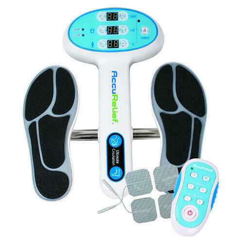 The AccuRelief Ultimate Foot Circulator is an advanced electrical muscle stimulator for home, work or travel. This powerful device delivers prescription strength relief by relaxing stiff muscles, and helping to reduce swollen feet and ankles while supporting increased blood circulation.