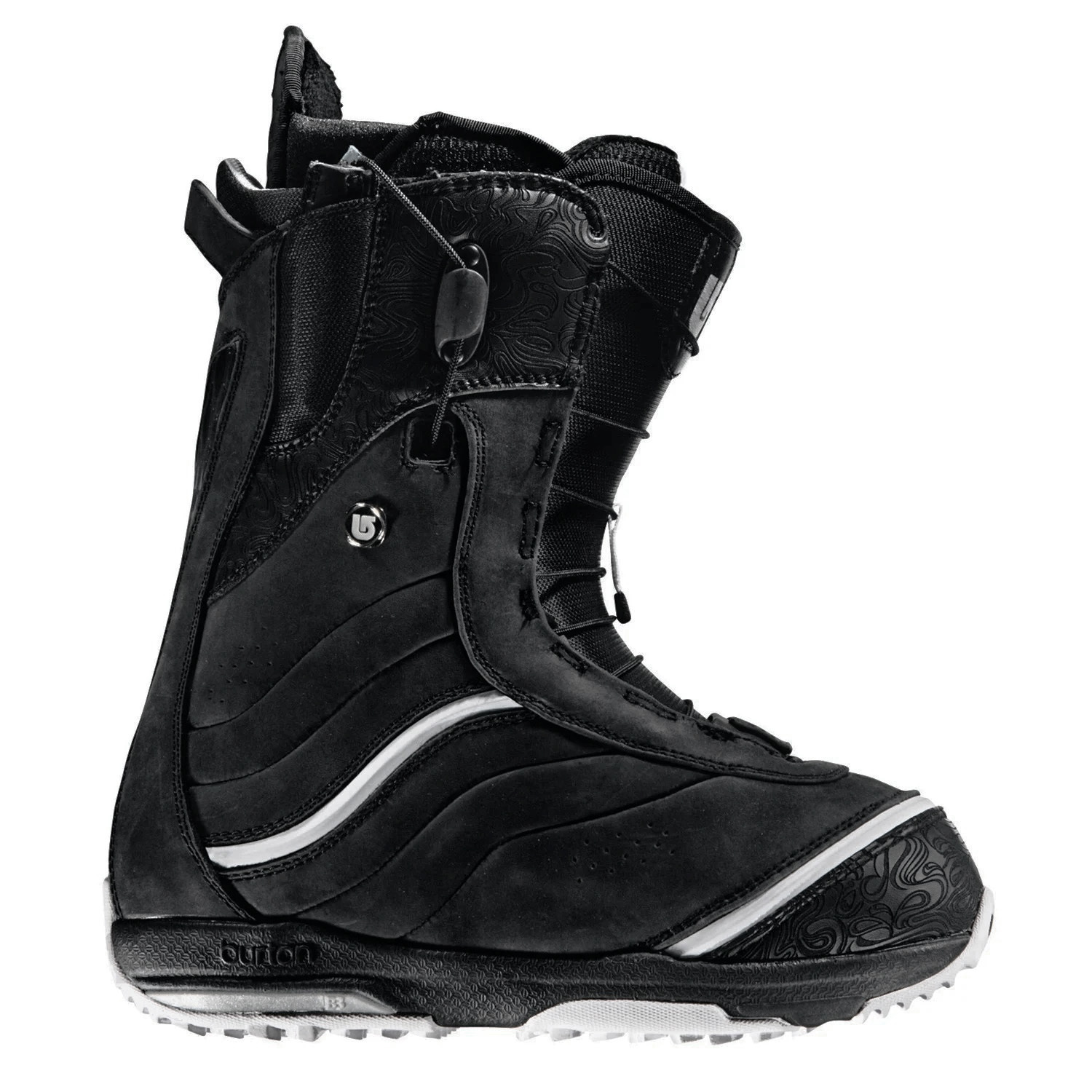 Burton Q Snowboard Boots - Women's : Maximum support for the ultimate in all-mountain horsepower, the Burton Q Boots deliver whether you’re running laps in the park or searching out hidden stashes. The only boot Victoria Jealouse deems worthy for untracked Alaskan peaks, the Burton Q provides her with the power she needs to dissect every inch of the mountain. Don’t let its aggressive face fool you – inside the Burton Q Snowboard Boot is plush with premium comfort, including a custom moldable True Fit liner that comes pre-wired for Therm-ic Heat.