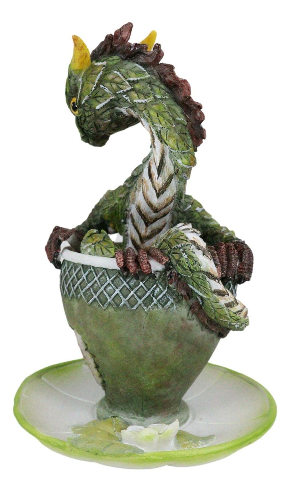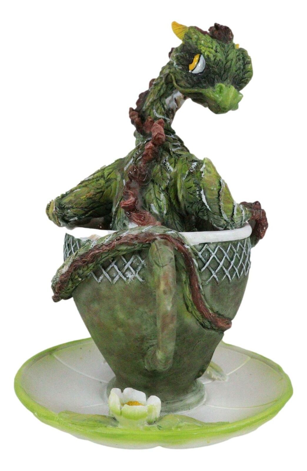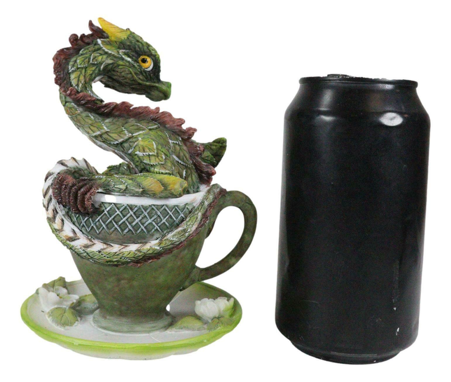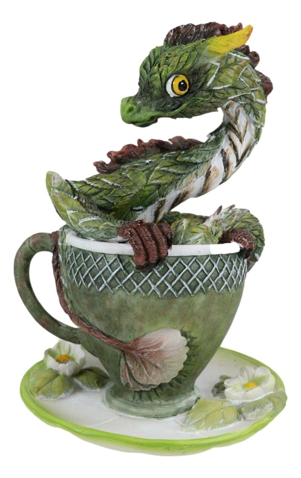 Ebros Fantasy English Green Tea Leaves And Flowers Dragon In Teacup Saucer Figurine