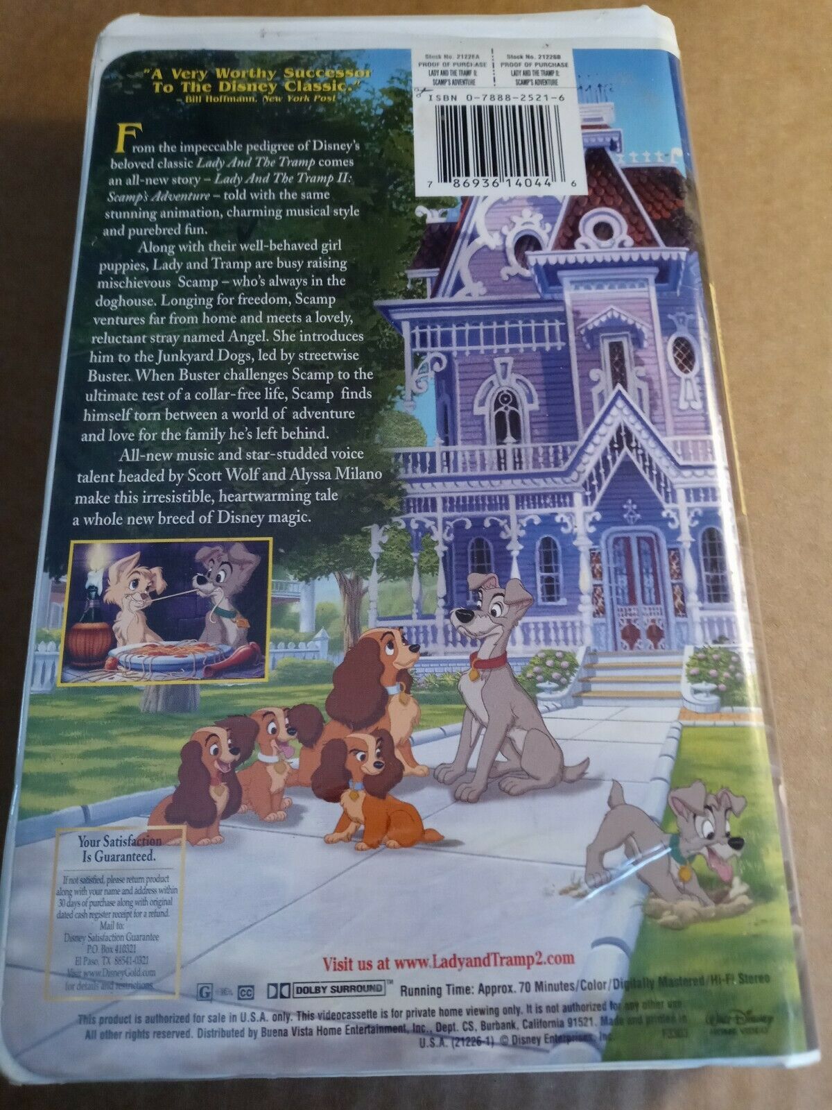 Walt Disney Lady And The Tramp II 2 Scamps Adventure VHS Clam Shell.Very Good Condition;