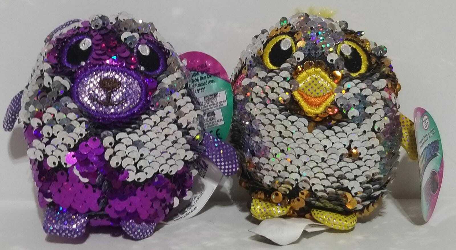 Set Of 2 Shimmeez Reversible Sequin Plush Clip On (G-21)