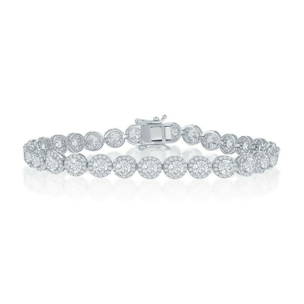 Sterling Silver Round Halo Clear CZ Elegant Tennis Bracelet